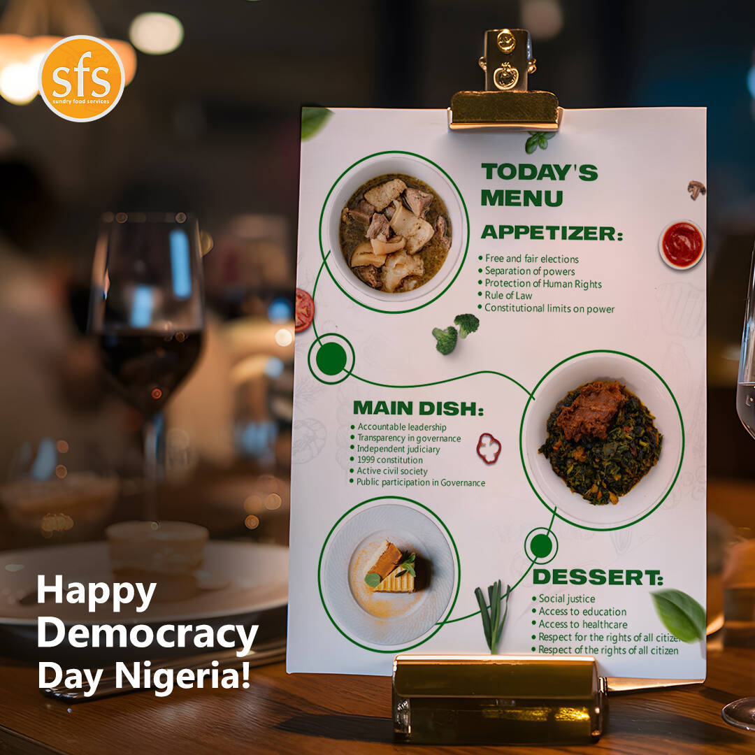 This professional campaign titled 'Democracy Day: There's nothing off our menu' was published in Nigeria in July, 2024. It was created for the brand: Sundry food services, by ad agency: Onewildcard. This Content, Design, and Digital media campaign is related to the Food industry and contains 1 media asset. It was submitted over 1 year ago.