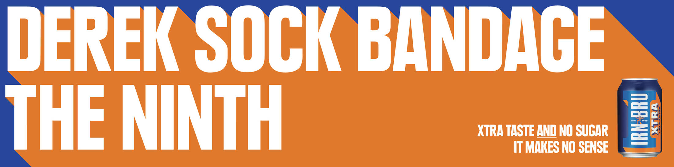 This professional campaign titled 'Derek Sock Bandage The Ninth, Always Deploy Pudding Flaps...' was published in United States in November, 2016. It was created for the brand: IRN-BRU, by ad agency: The Leith Agency. This OOH Outdoor medium campaign is related to the Drinks (Non Alcoholic) industry and contains 7 media assets. It was submitted about 9 years ago.