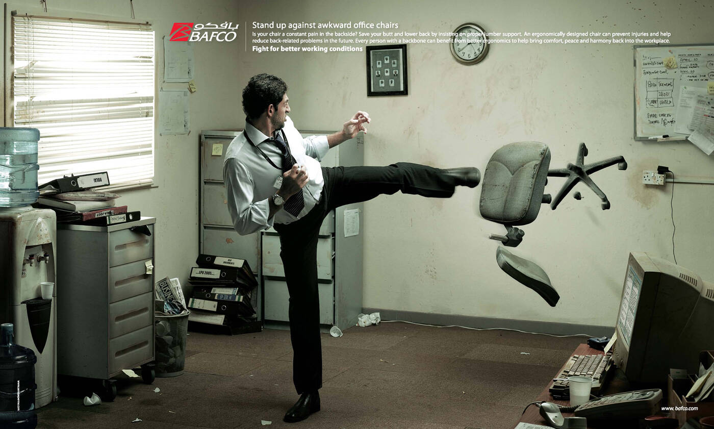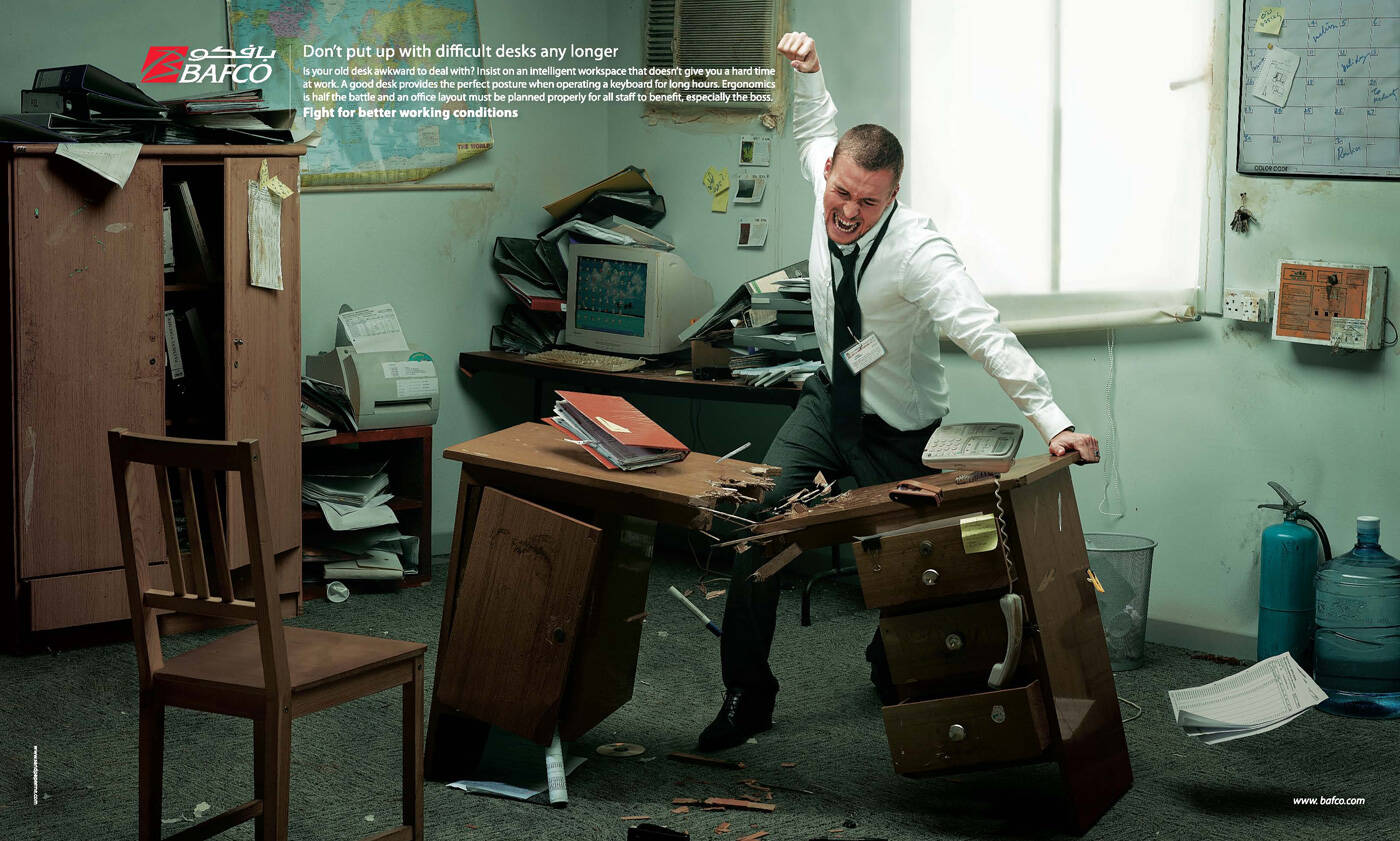 This professional campaign titled 'Desk, Cabinet, Chair' was published in United Arab Emirates in July, 2010. It was created for the brand: BAFCO, by ad agency: Sandpaper. This Print medium campaign is related to the House, Garden industry and contains 3 media assets. It was submitted over 15 years ago.