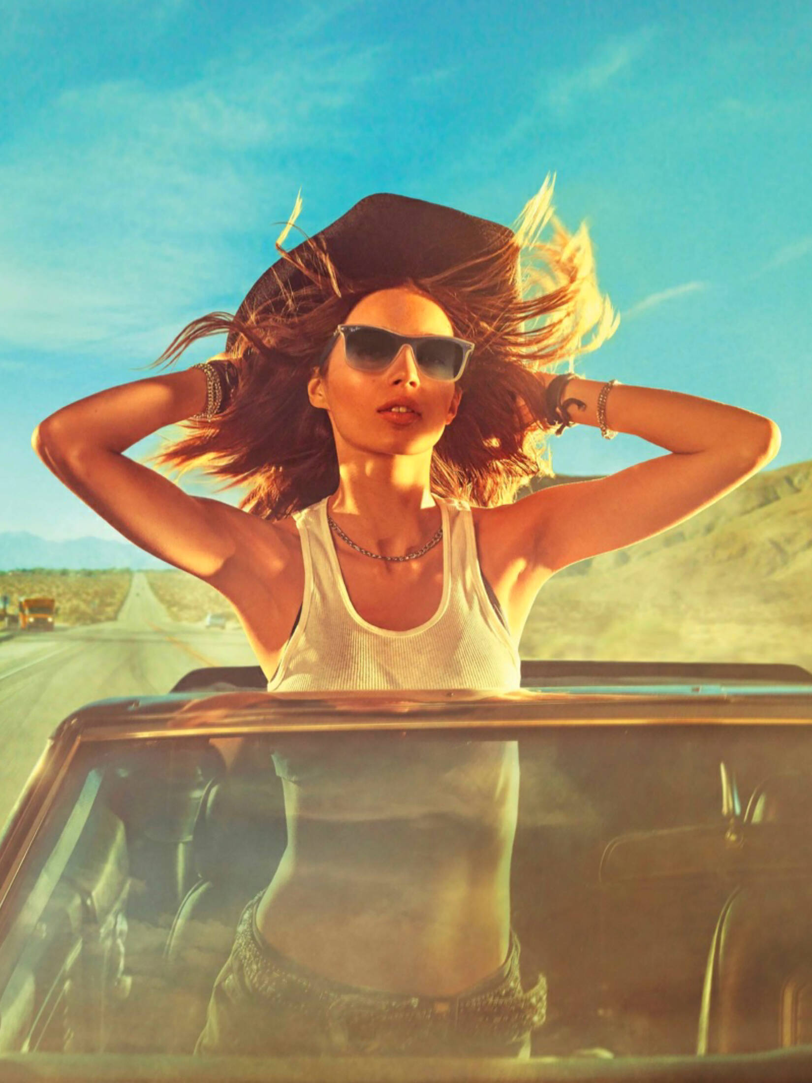 Steven Klein & Neel Majumder, head to the open road for Ray-Bans 2018 campaign called, ‘Destination Everywhere’. Models Soo Joo Park, Constanze Saemann, Markel Williams and Austin Kellogg pose in the desert wearing the eyewear brand’s signature styles. The quartet go on a road trip rocking The Marshal, Wayfarer Blaze, Aviator Evolve and Hexagonal shades. With each protagonist chasing their dream, the sun-drenched shots and accompanying film channel cinematic vibes.