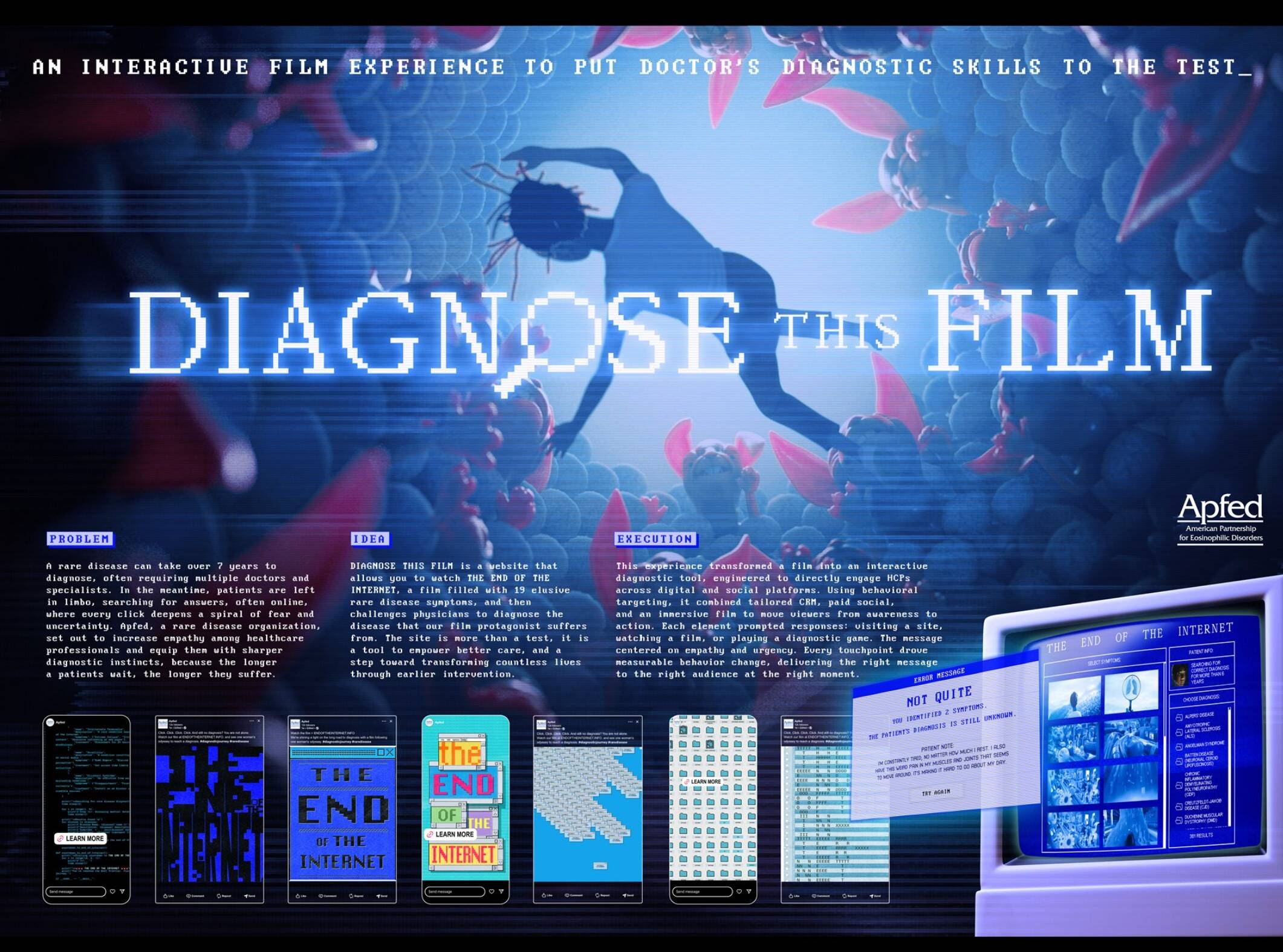 This professional campaign titled 'Diagnose This Film' was published in United States in January, 2026. It was created for the brand: American Partnership for Eosinophilic Disorders, by ad agency: AREA 23, an IPG Health Company. This Integrated medium campaign is related to the Health industry and contains 4 media assets. It was submitted 3 days ago.