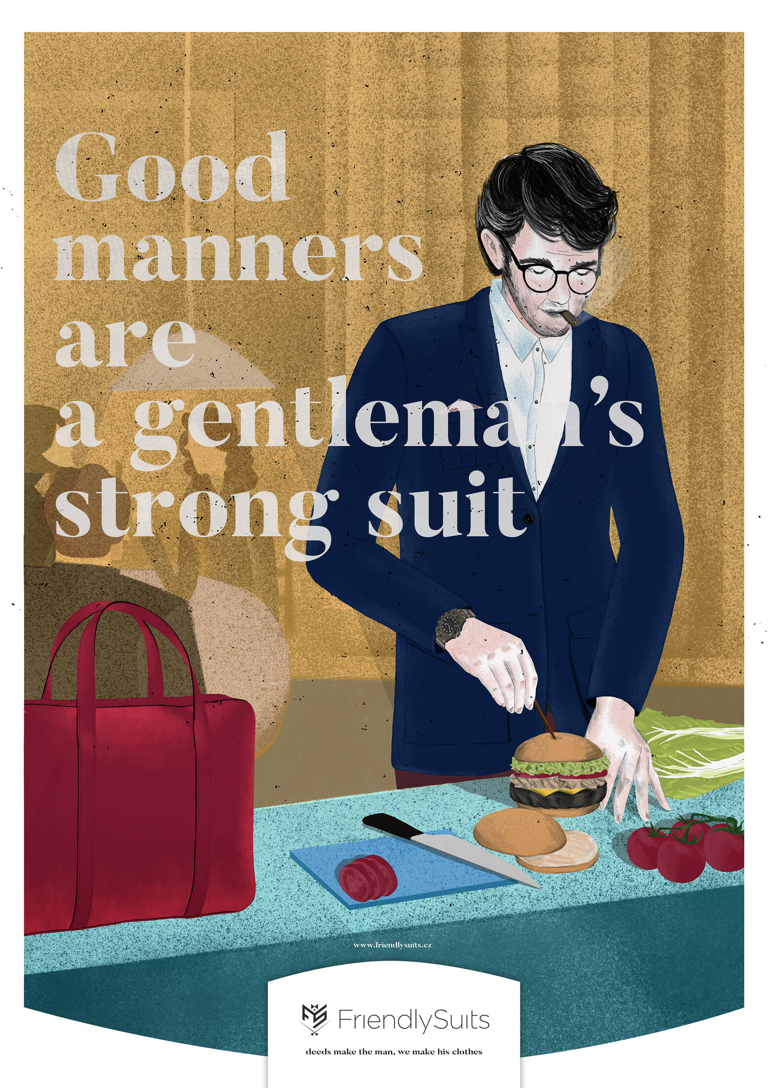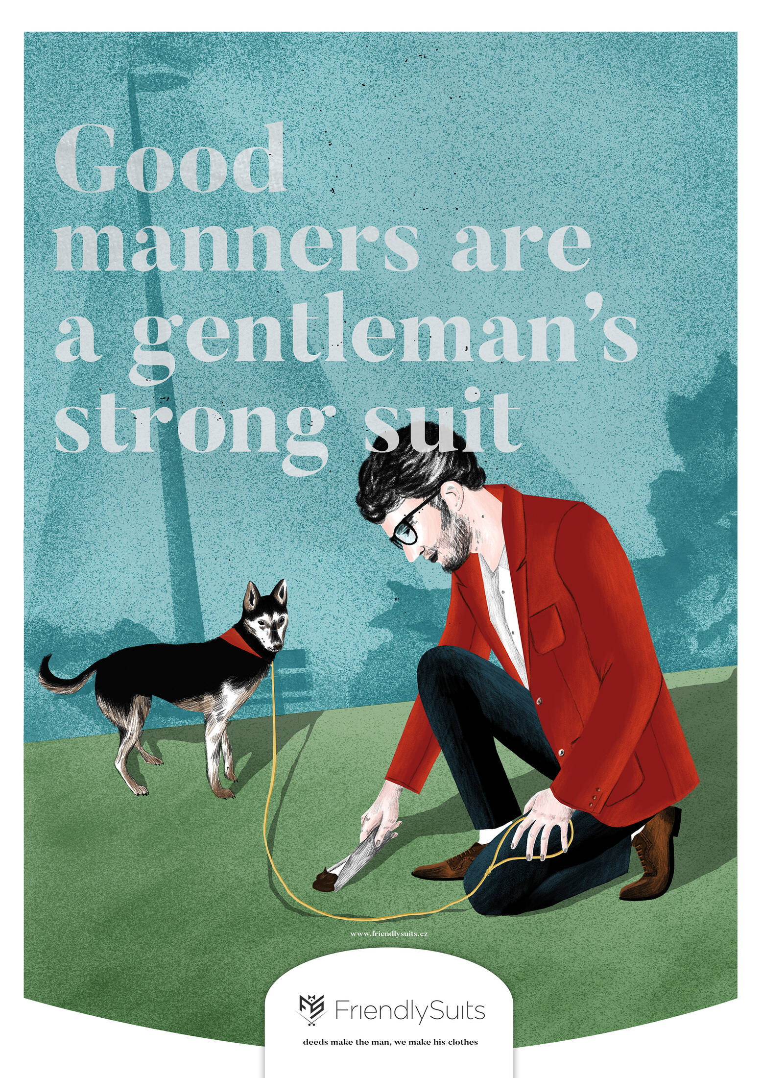 This professional campaign titled 'Dinner, Walking Dog' was published in Czechia in May, 2017. It was created for the brand: Friendly Suits, by ad agency: Nydrle.. This Print medium campaign is related to the Fashion industry and contains 2 media assets. It was submitted over 8 years ago.