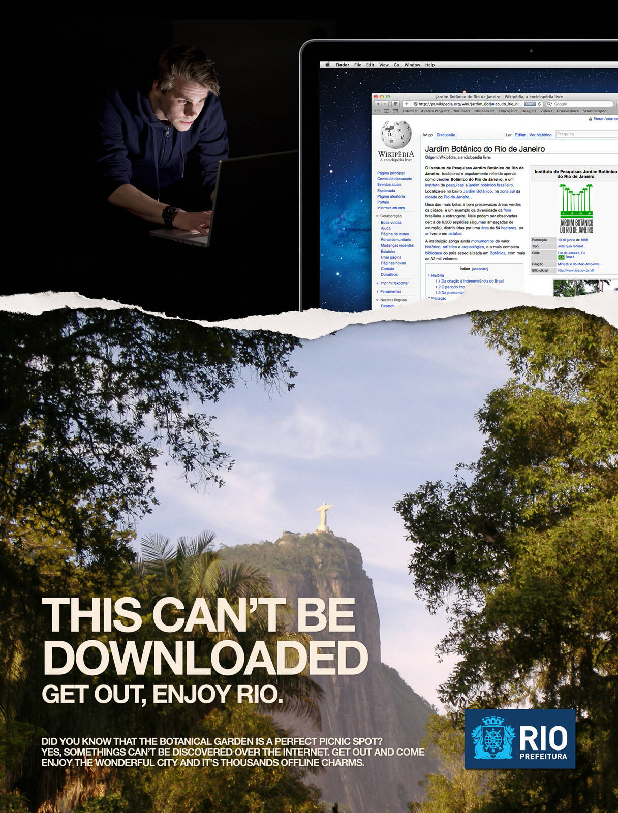 This professional campaign titled 'Disconnect, This can't be downloaded' was published in Brazil in August, 2011. It was created for the brand: City of Rio de Janeiro, by ad agency: Instintiva. This Print medium campaign is related to the Transport industry and contains 2 media assets. It was submitted about 14 years ago.