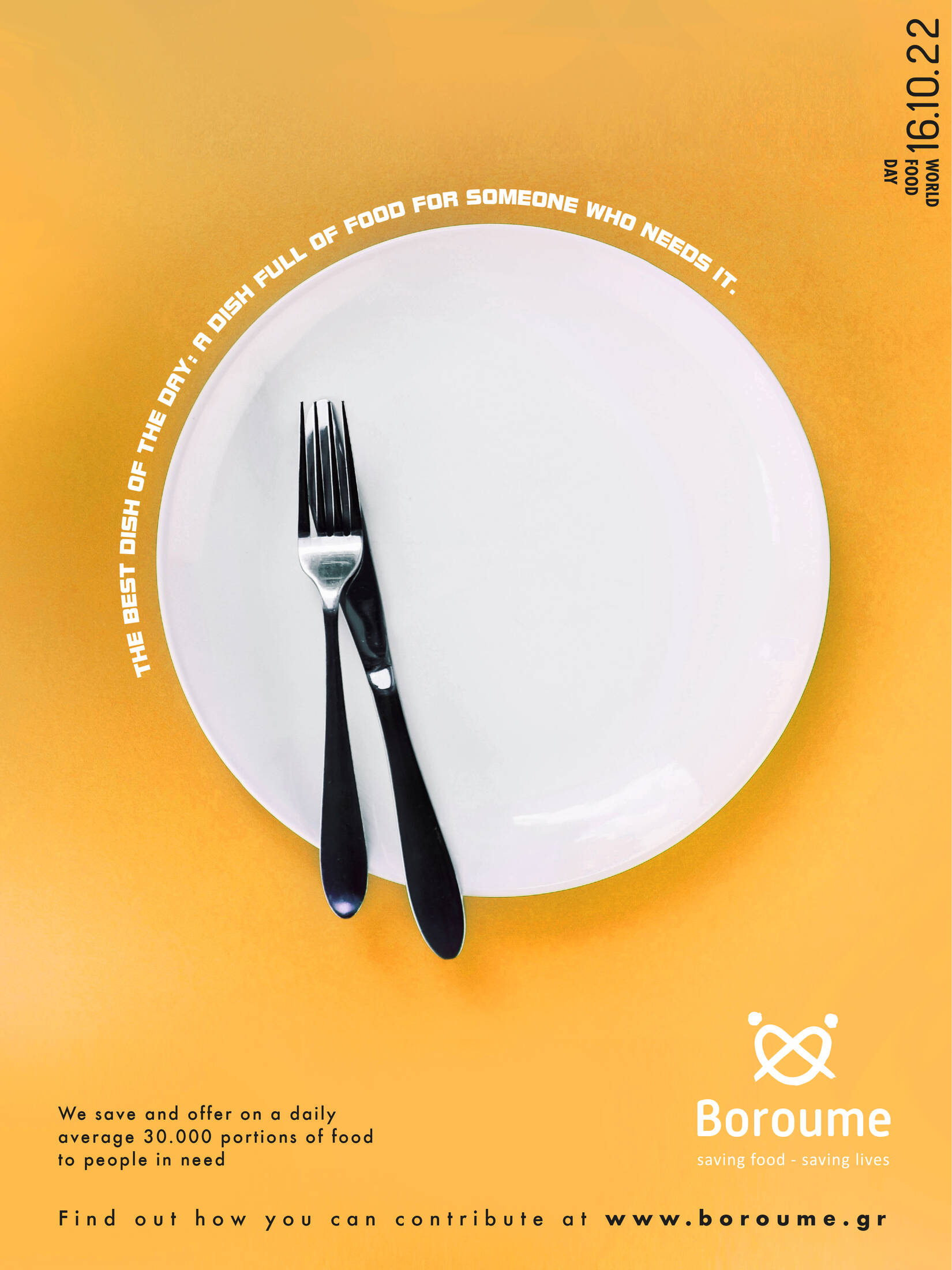 If you consider the billions of hungry people around the world, your point of view of the world of gastronomy changes completely. Because the best dish of any day, is a dish full of food, offered to someone hopelessly waiting for dinner in front of an ever empty plate. A World Food Day 2022 campaign for Boroume (We can), a non-profit organization, who save and offer food to people in need in Greece.
