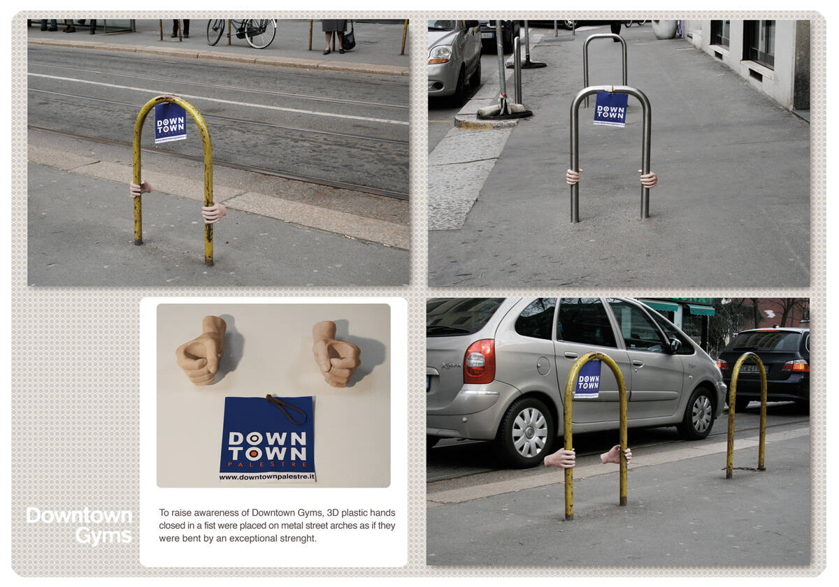 This professional campaign titled 'Dissuaders, Hands' was published in Italy in March, 2008. It was created for the brand: Downtown Gyms, by ad agency: DDB. This Ambient medium campaign is related to the Recreation, Leisure industry and contains 2 media assets. It was submitted almost 18 years ago.