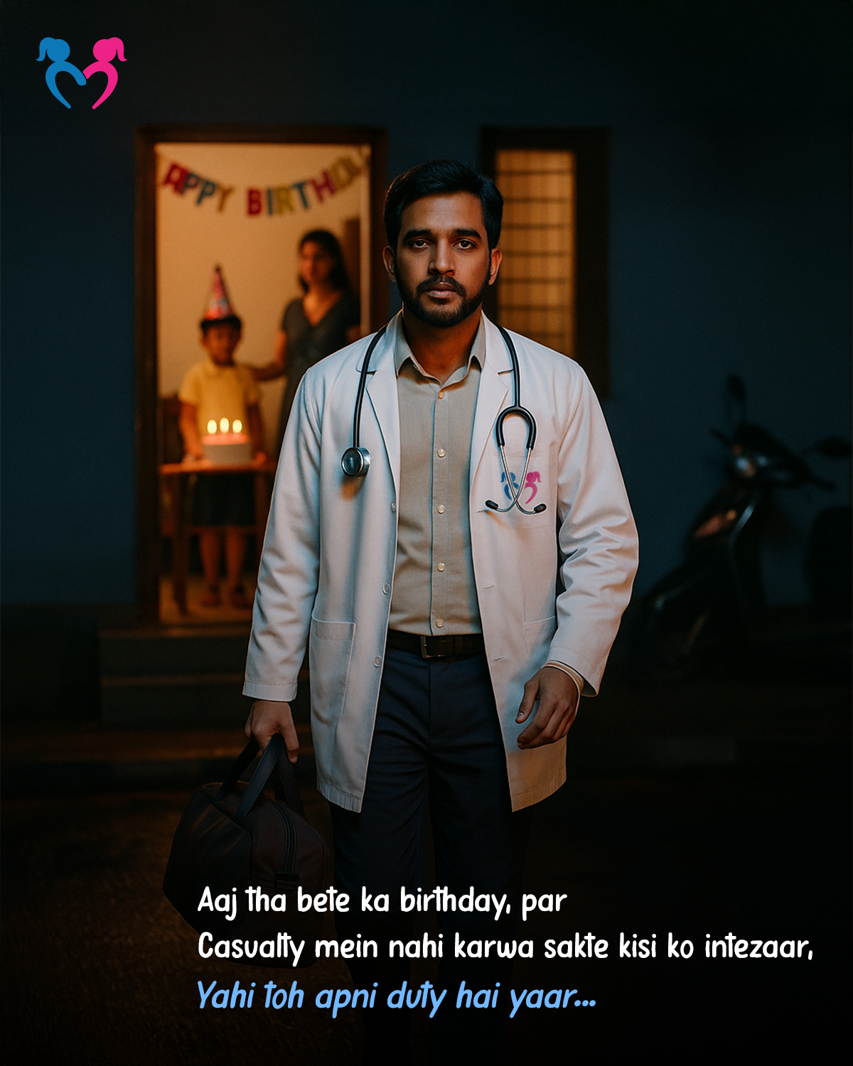 Campaign for doctors day. communicating doctors have to do duty even if its logout time, festivals family events etc. The message was from doctors to doctors community.
