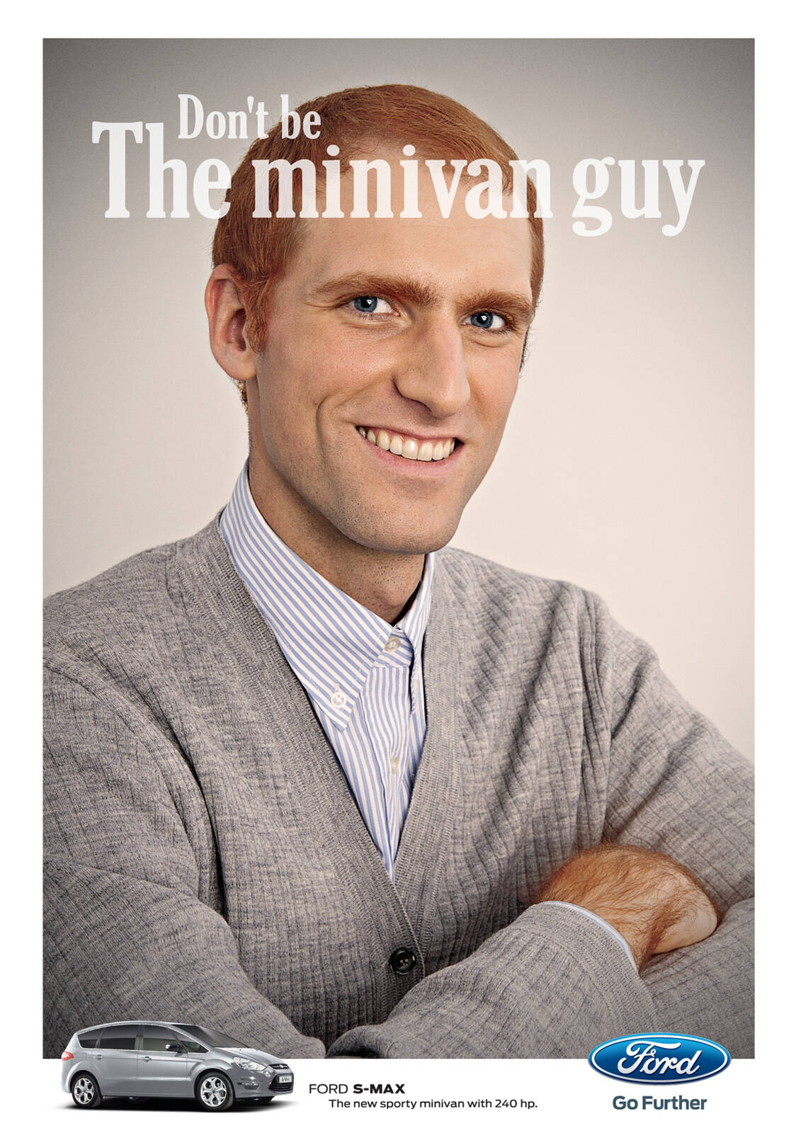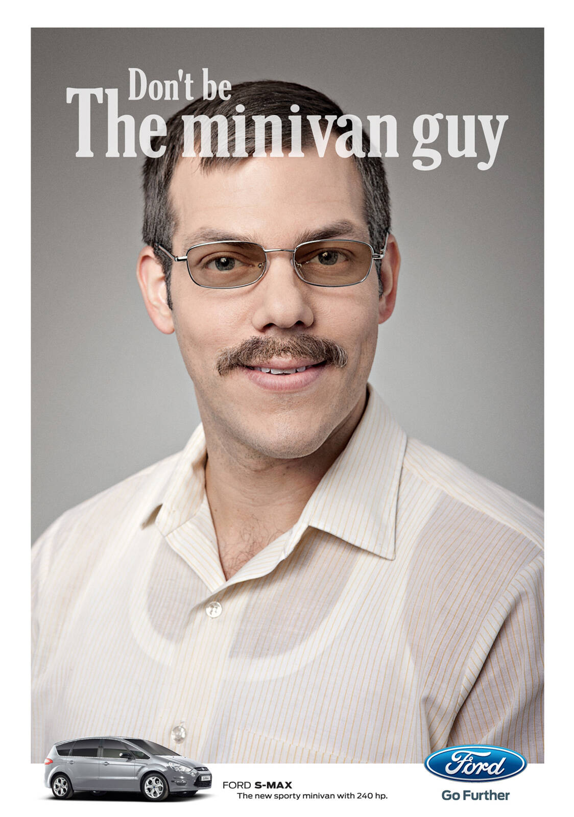 This professional campaign titled 'Don't be the minivan guy' was published in Israel in August, 2012. It was created for the brand: Ford, by ad agency: Saatchi & Saatchi. This Print medium campaign is related to the Automotive and Personal Transportation industry and contains 3 media assets. It was submitted over 13 years ago.