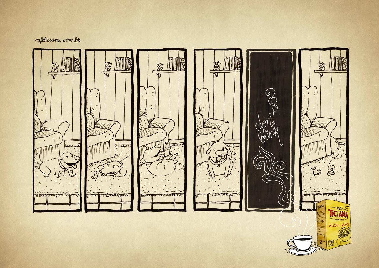 This professional campaign titled 'Don't blink, Dog, Don't blink, Girl' was published in Brazil in January, 2013. It was created for the brand: Coffee Ticiana, by ad agency: Blu. This Print medium campaign is related to the Drinks (Non Alcoholic) industry and contains 2 media assets. It was submitted almost 13 years ago.