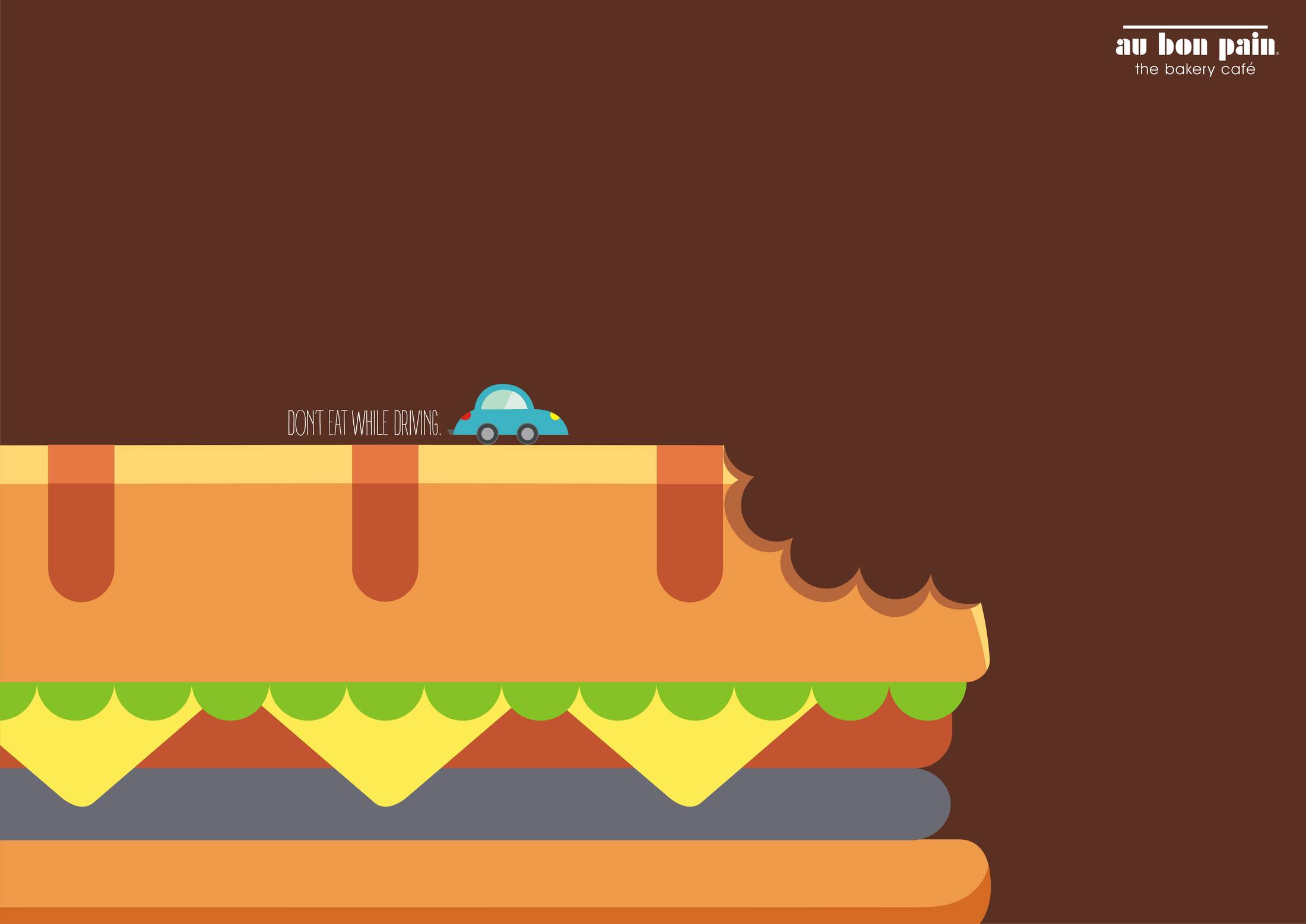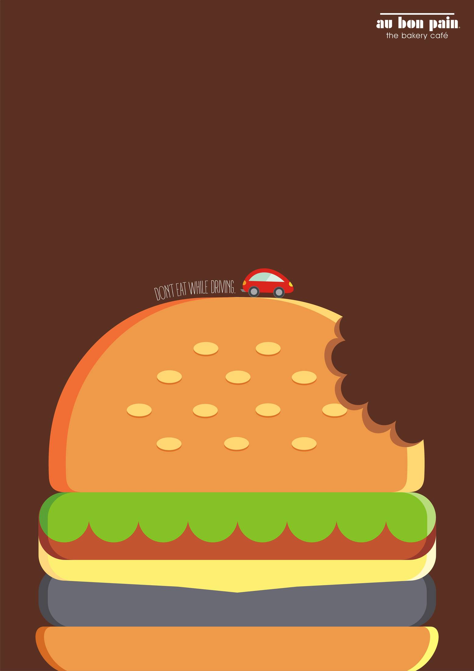 This professional campaign titled 'Don't Eat While Driving' was published in India in November, 2016. It was created for the brand: Au Bon Pain, by ad agency: Bang In The Middle. This Print medium campaign is related to the Food industry and contains 3 media assets. It was submitted over 8 years ago.