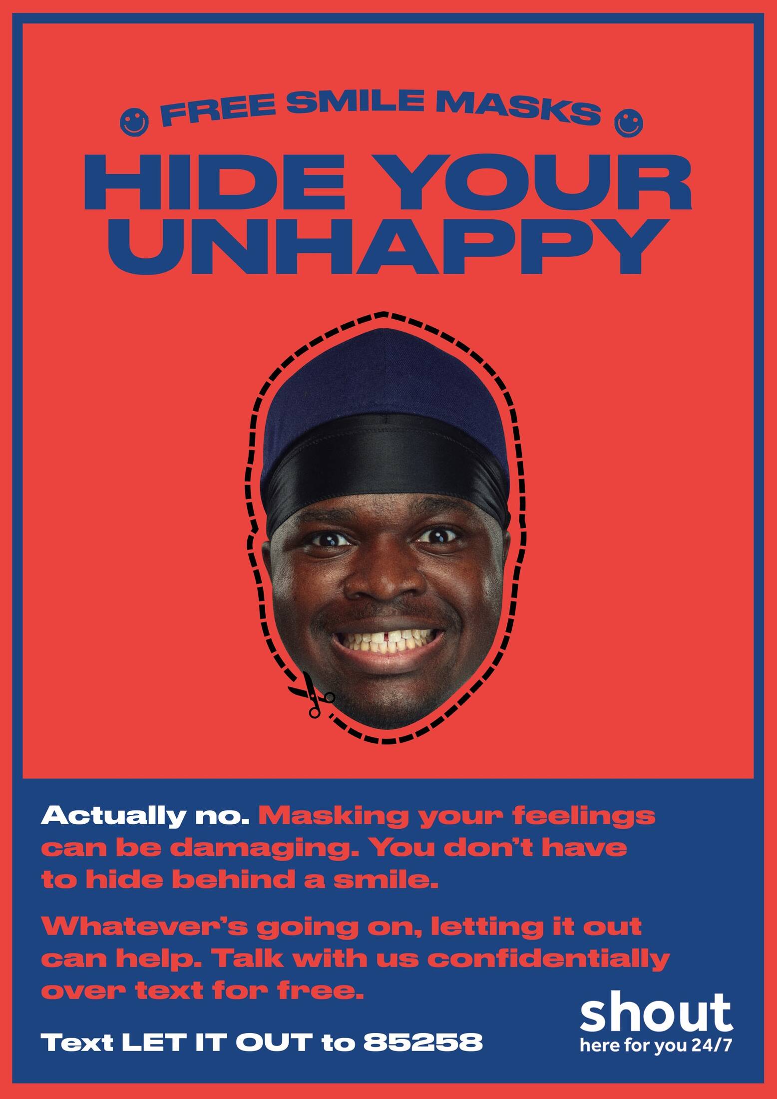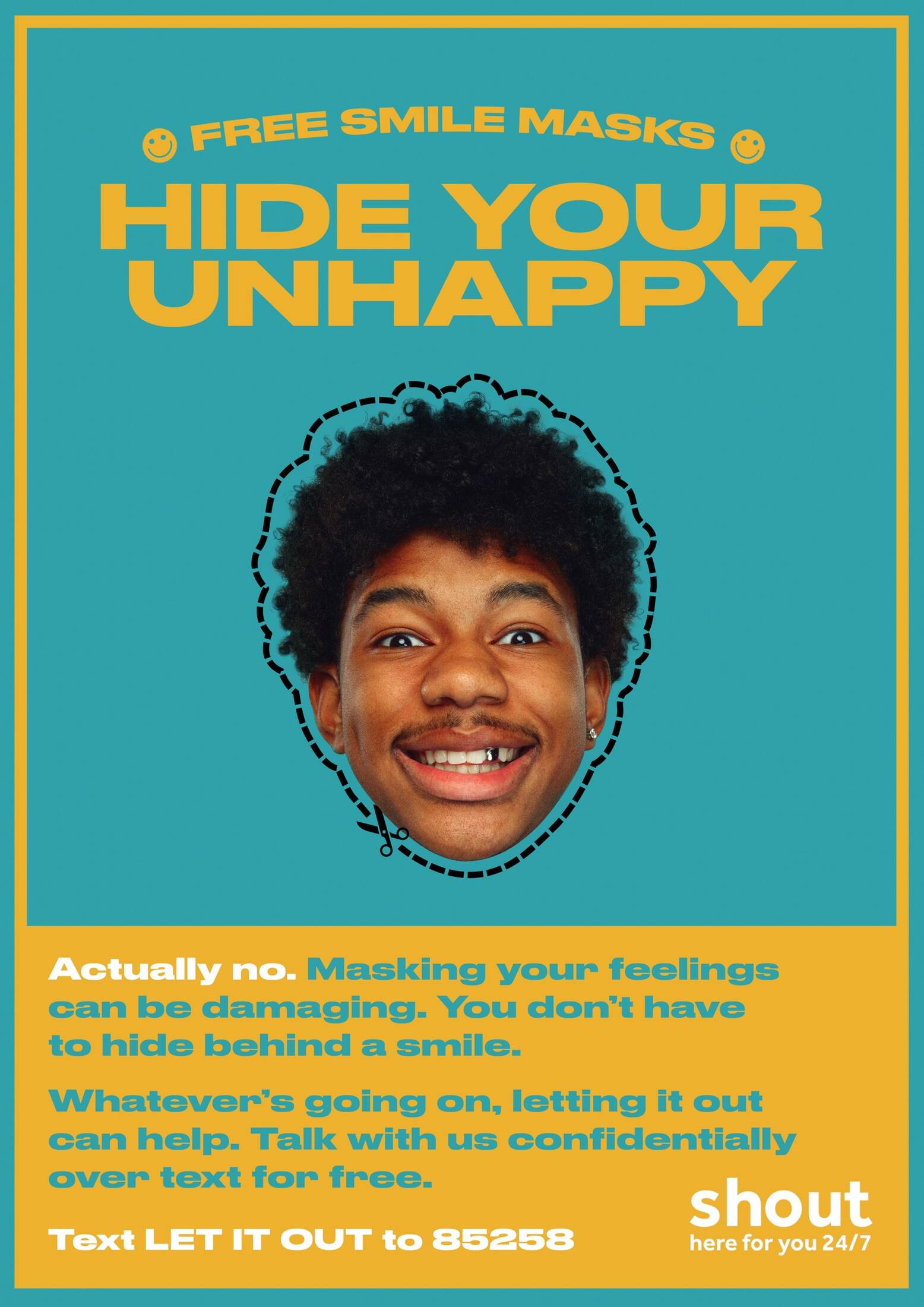 This professional campaign titled 'Don't Hide Your Unhappy' was published in United Kingdom in July, 2021. It was created for the brand: Create Not Hate, by ad agency: Quiet Storm. This Integrated medium campaign is related to the Public Interest industry and contains 5 media assets. It was submitted over 4 years ago.
