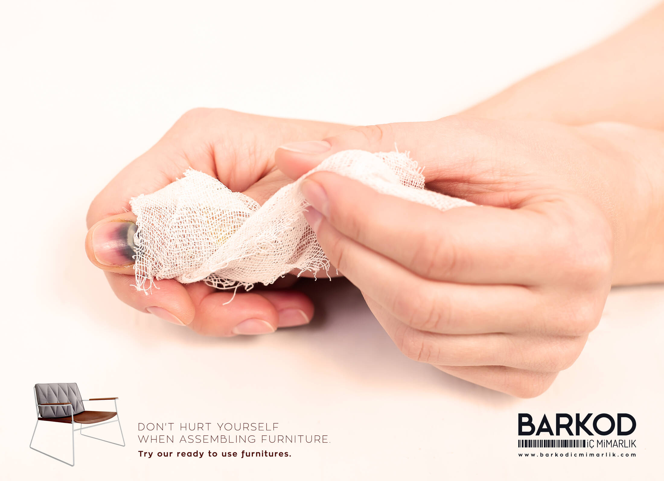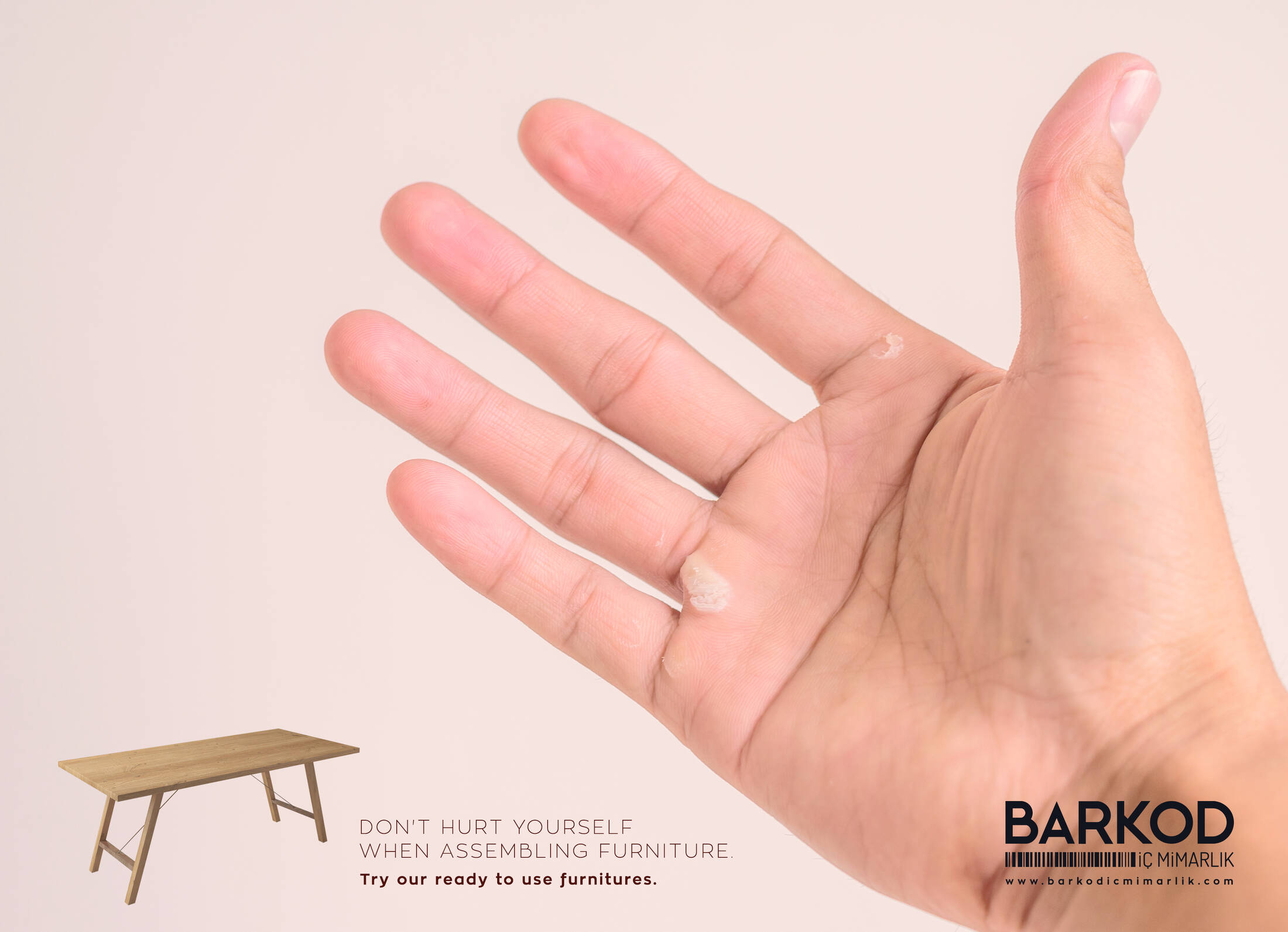 This professional campaign titled 'Don't hurt - knee, Don't hurt - nail, Don't hurt - hand' was published in Turkey in December, 2016. It was created for the brand: Barkod İç Mimarlık, by ad agency: Barkod Ads&Brands. This Print medium campaign is related to the House, Garden industry and contains 3 media assets. It was submitted almost 9 years ago.