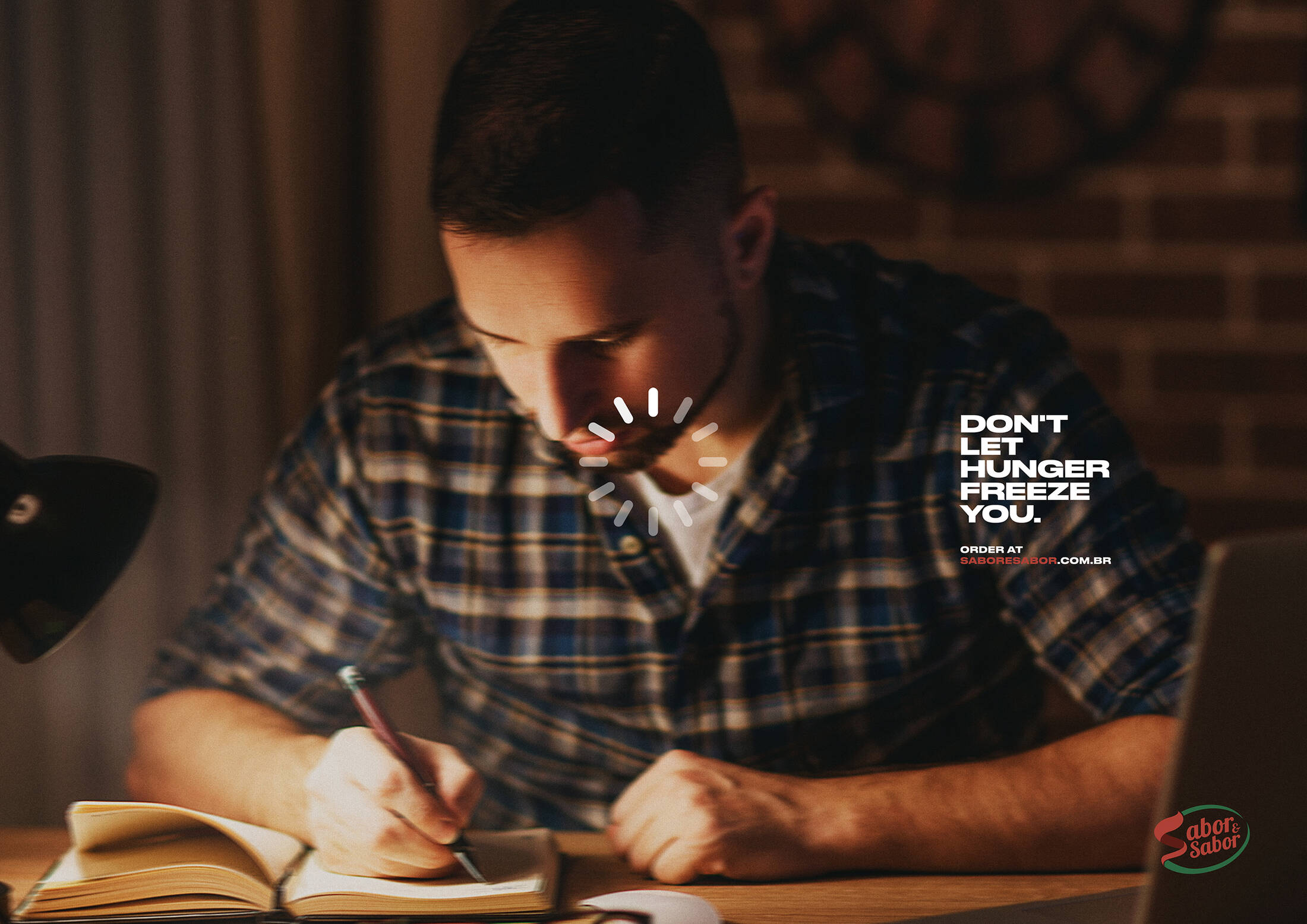 This professional campaign titled 'Don't Let Hunger Freeze You' was published in Brazil in October, 2019. It was created for the brand: Sabor e Sabor, by ad agency: LCT. This Print medium campaign is related to the Food industry and contains 2 media assets. It was submitted about 6 years ago by Creative director: Ricardo Tramontini of LCT.