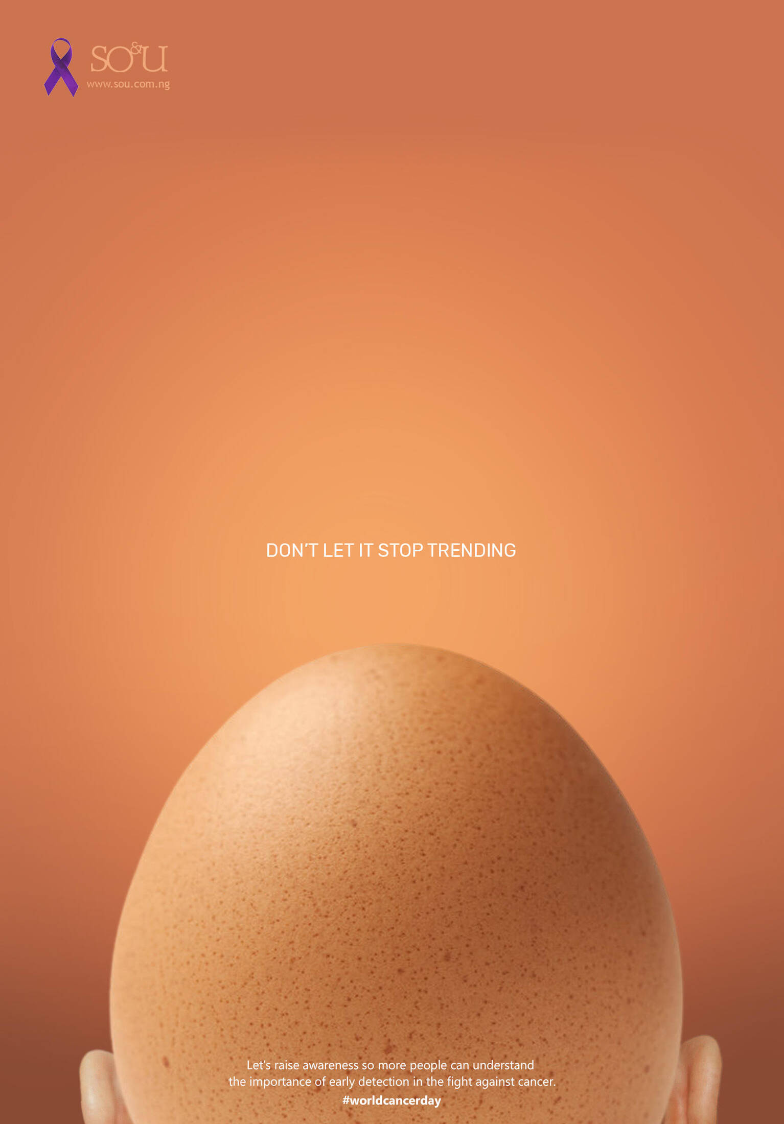 This professional campaign titled 'Don't Let It Stop Trending' was published in Nigeria in February, 2019. It was created by ad agency: SO&U. This Print medium campaign is related to the Public Interest industry and contains 1 media asset. It was submitted almost 7 years ago.