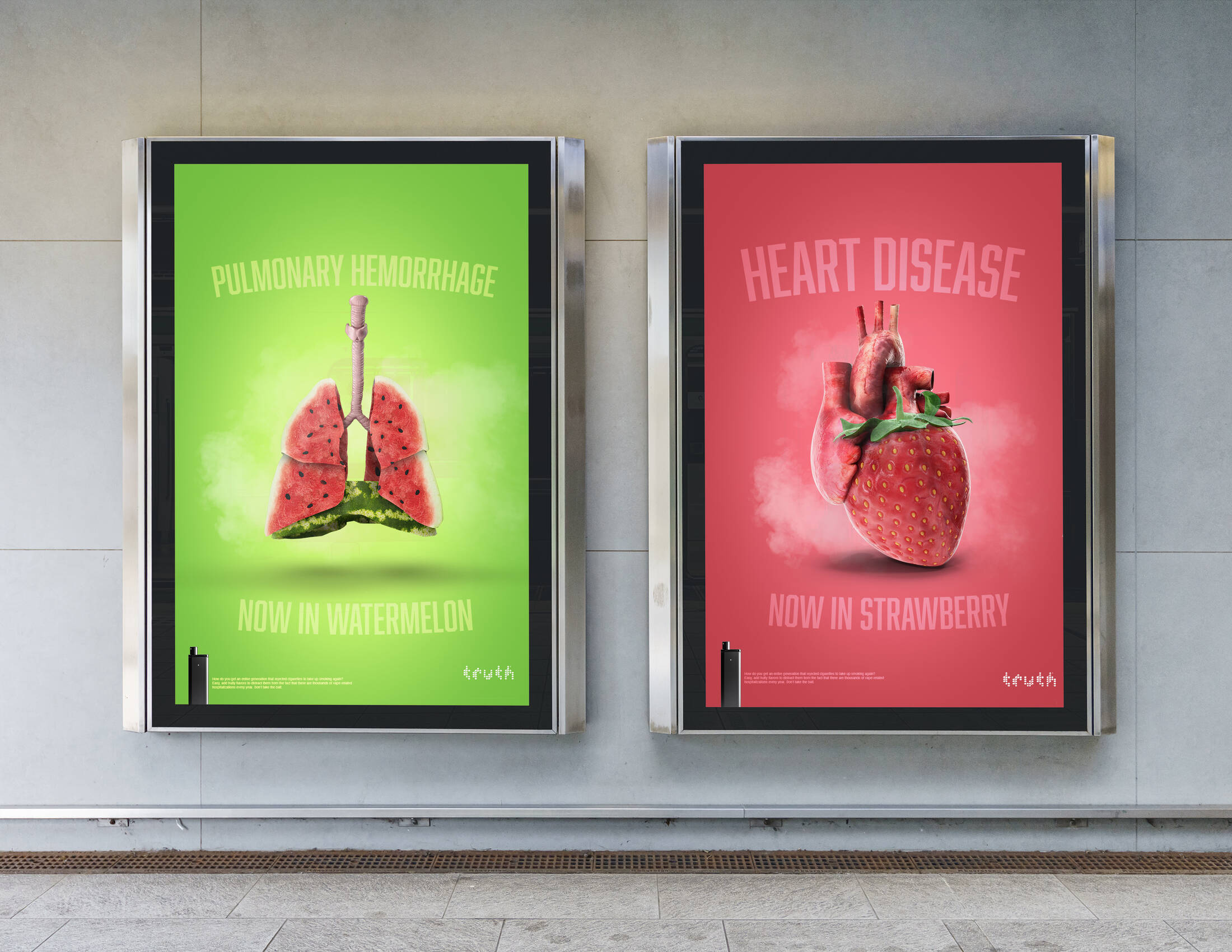 This student campaign titled 'Don't Take the Bait' was published on December 28, 2023. It was created for the brand: Truth: Anti-Vaping PSA, by ad school: Southern Methodist University. This 360°, OOH Outdoor, and Print media campaign is related to the Public Interest industry and contains 5 media assets. It was submitted almost 2 years ago by Senior Lecturer & Creative Program Director: Mark Allen of Southern Methodist University.