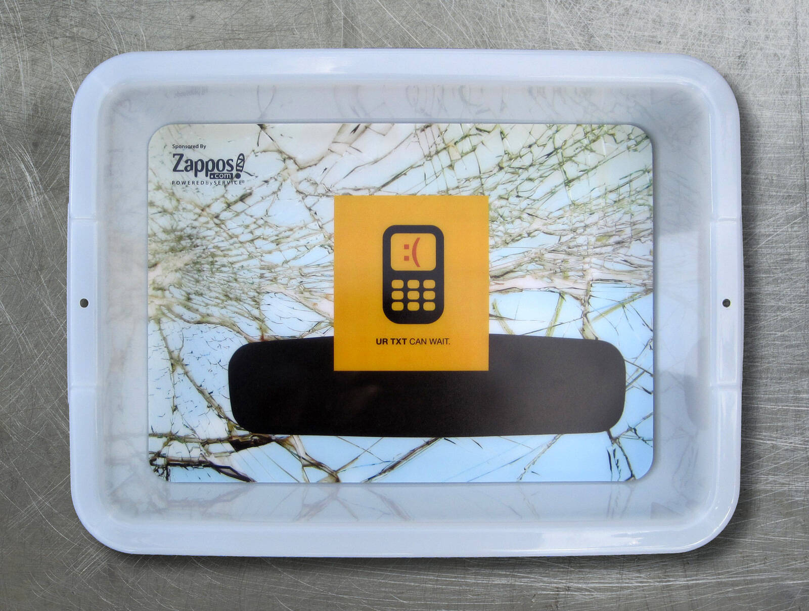 Safe driving campaign appearing throughout the United States at airport security checkpoints.