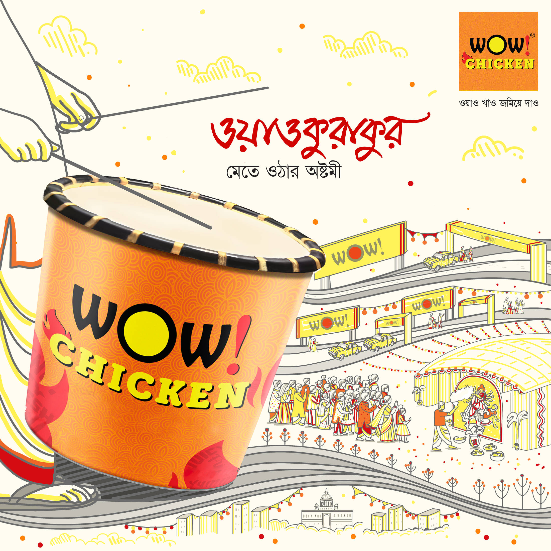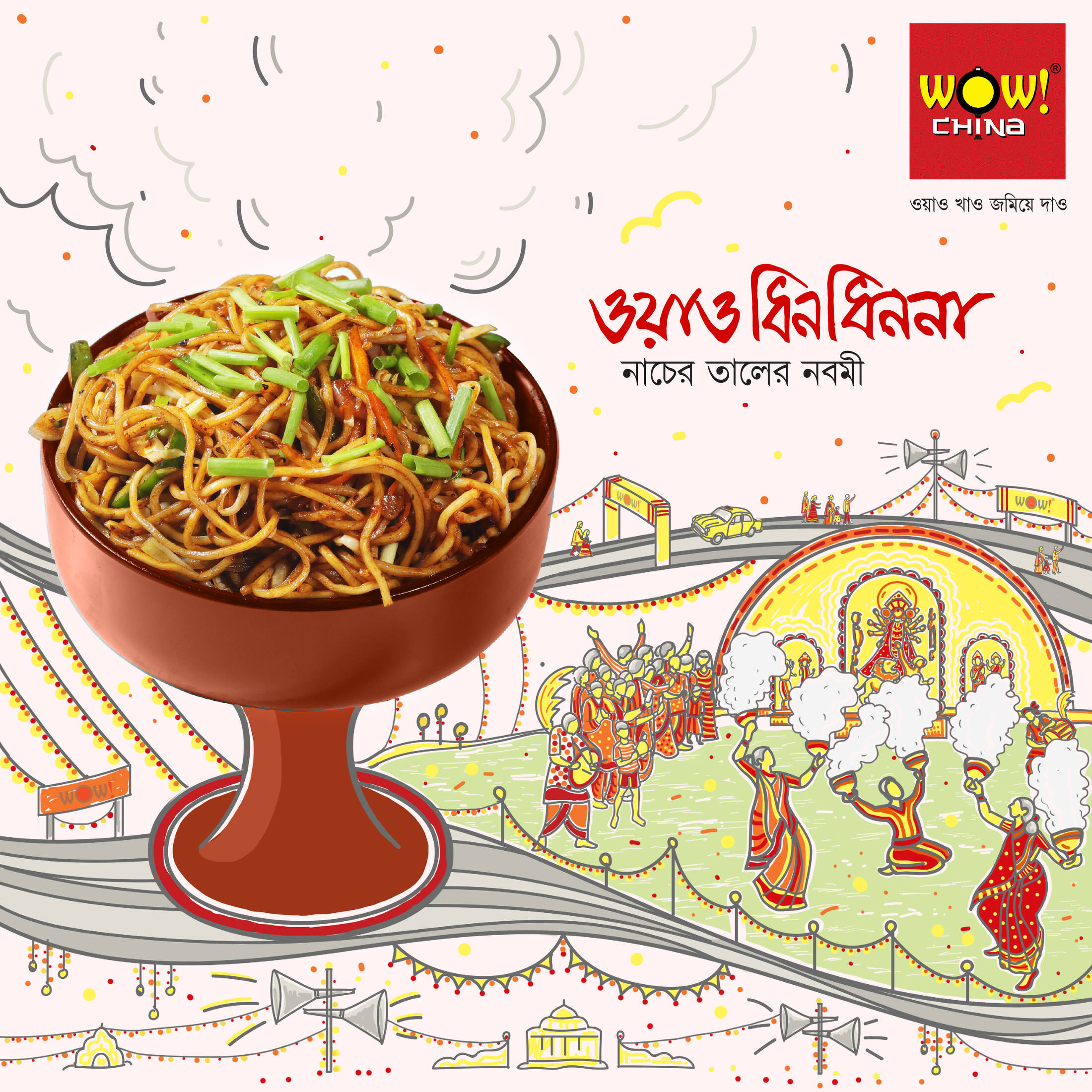 The greatest festival on Earth, Durga Puja, is synonymous with culinary extravaganza. From delectable momo to authentic Chinese cuisine, crispy chicken to delightful kulfi - WOW! offers something for everyone. Inspired by this insight, we've seamlessly integrated WOW! products into festive rituals, highlighting the brand's deep connection with Bengali culture. The copy humorously incorporates popular Bengali phrases like 'Ku-jhik-jhik', 'Dhyang-kura-kur', 'Na-dhin-dhin-na', etc.