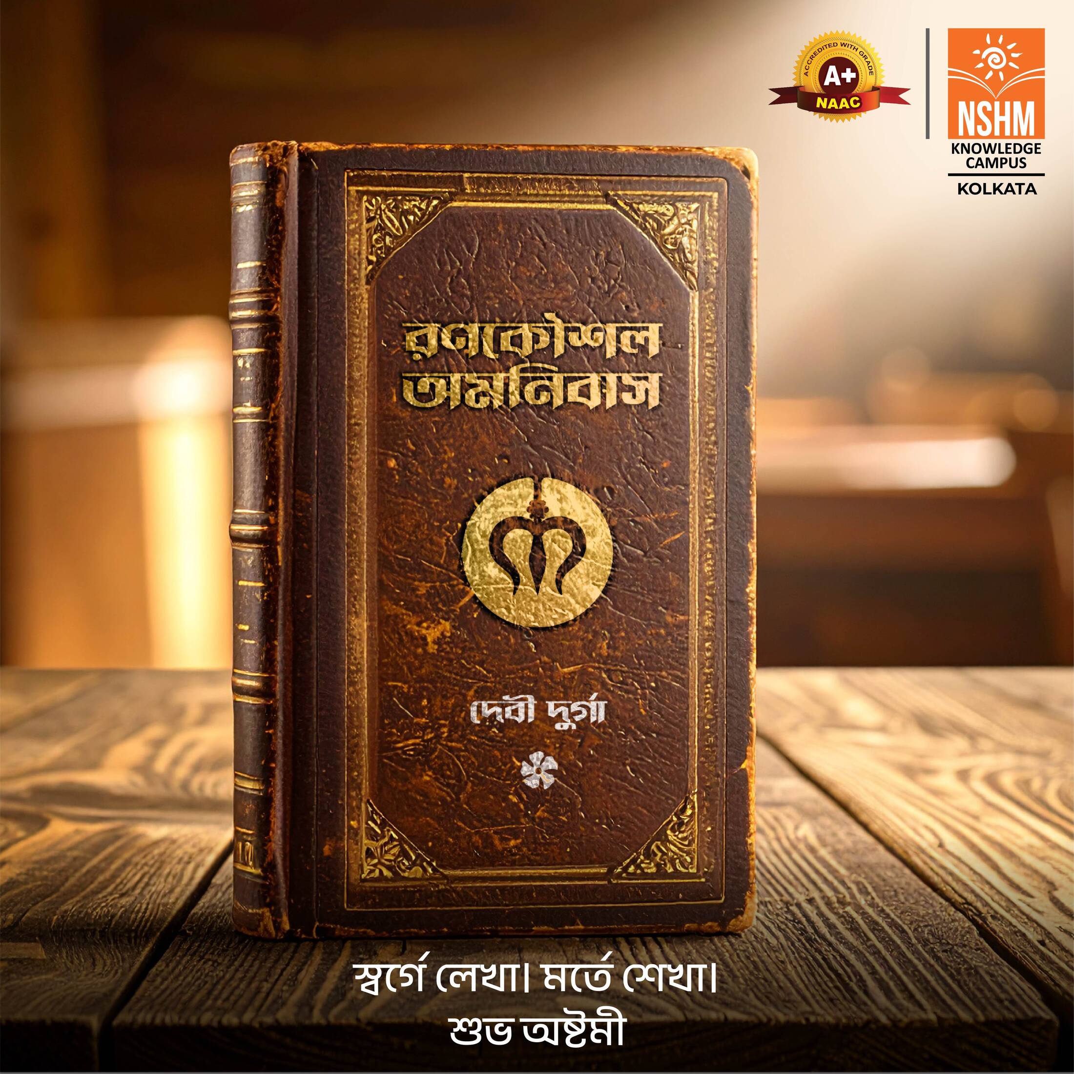 During Durga Puja, we don’t just worship the divine - we learn from it. Every Mahashtami and Bijaya Dashami, when Bengalis touch their books to the deity’s feet - it becomes a tribute to knowledge, wisdom and learning. For NSHM Knowledge Campus, we have reimagined this tradition through the most fitting symbol - books. We designed five ancient-looking books that represent five deities and the lessons they impart. Devi Durga as the teacher of strength, Devi Saraswati of knowledge, Devi Lakshmi of prosperity and more. The idea is brought together with the campaign line - 'Written in heaven, learnt on earth' - celebrating the divine origin of human learning.