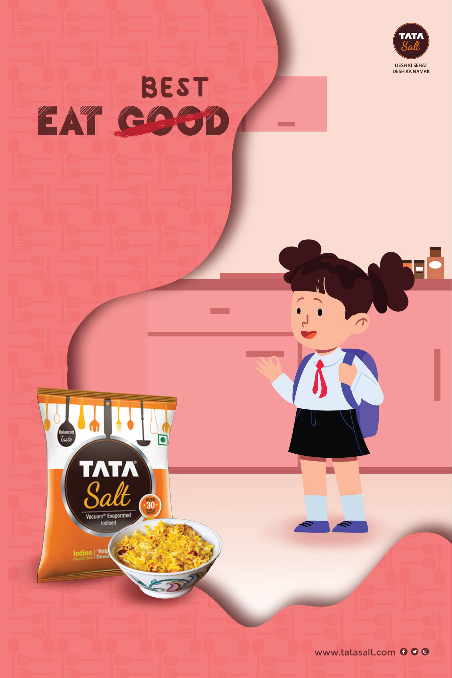This student campaign titled 'Eat Best, healthy, right and pure' was published in India in May, 2022. It was created for the brand: Tata Salt, by ad school: College of Art. This Print medium campaign is related to the Food industry and contains 4 media assets. It was submitted over 3 years ago by Diksha Mehta.