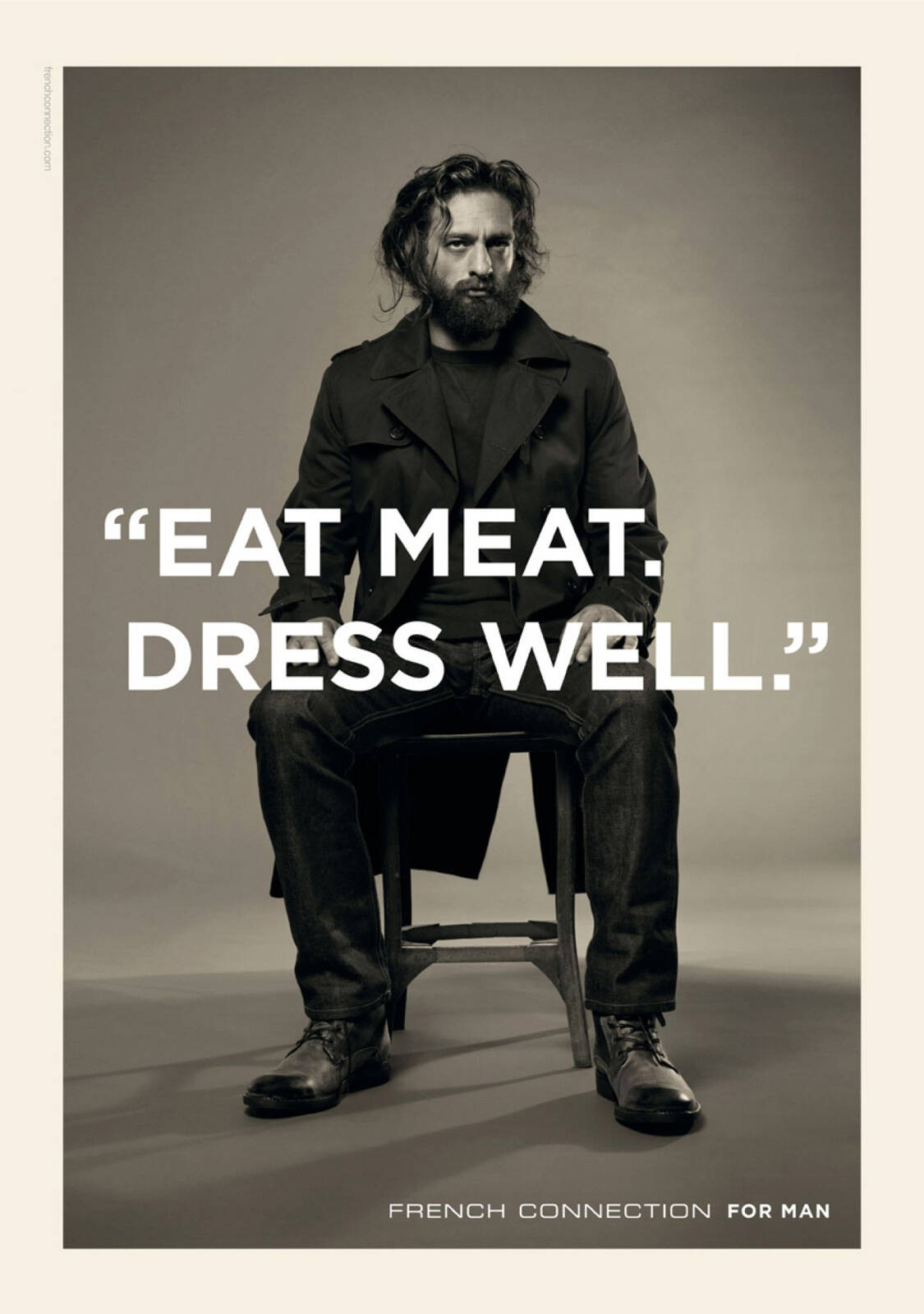 This professional campaign titled 'Eat meat, Dance, Curves, Child, Brave' was published in United Kingdom in September, 2010. It was created for the brand: French Connection, by ad agency: Fallon. This Print medium campaign is related to the Fashion industry and contains 5 media assets. It was submitted about 15 years ago.