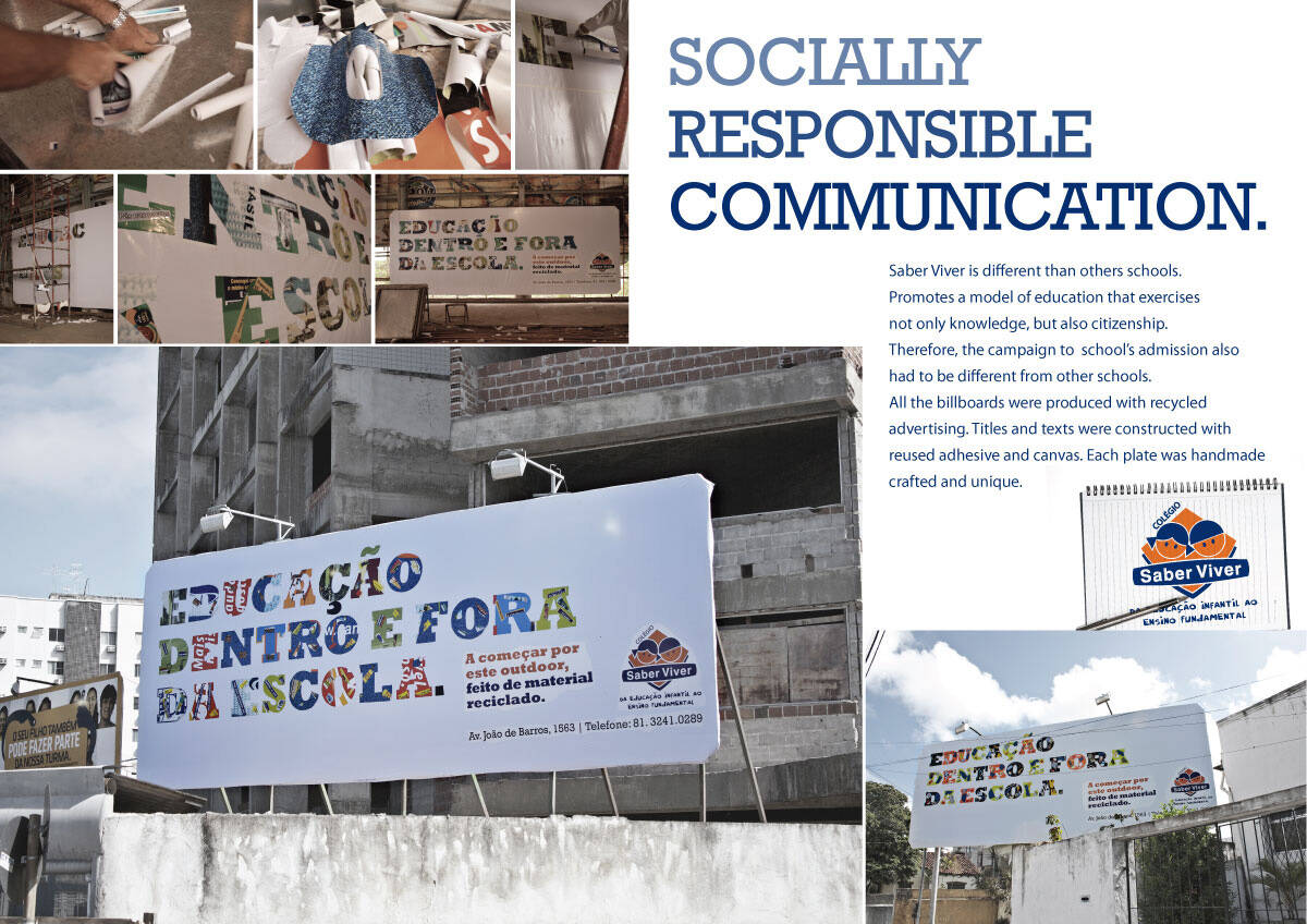 This professional campaign titled 'Education in the school and outside' was published in Brazil in February, 2011. It was created for the brand: Saber Viver, by ad agency: Gruponove. This OOH Outdoor medium campaign is related to the Education industry and contains 1 media asset. It was submitted over 14 years ago.
