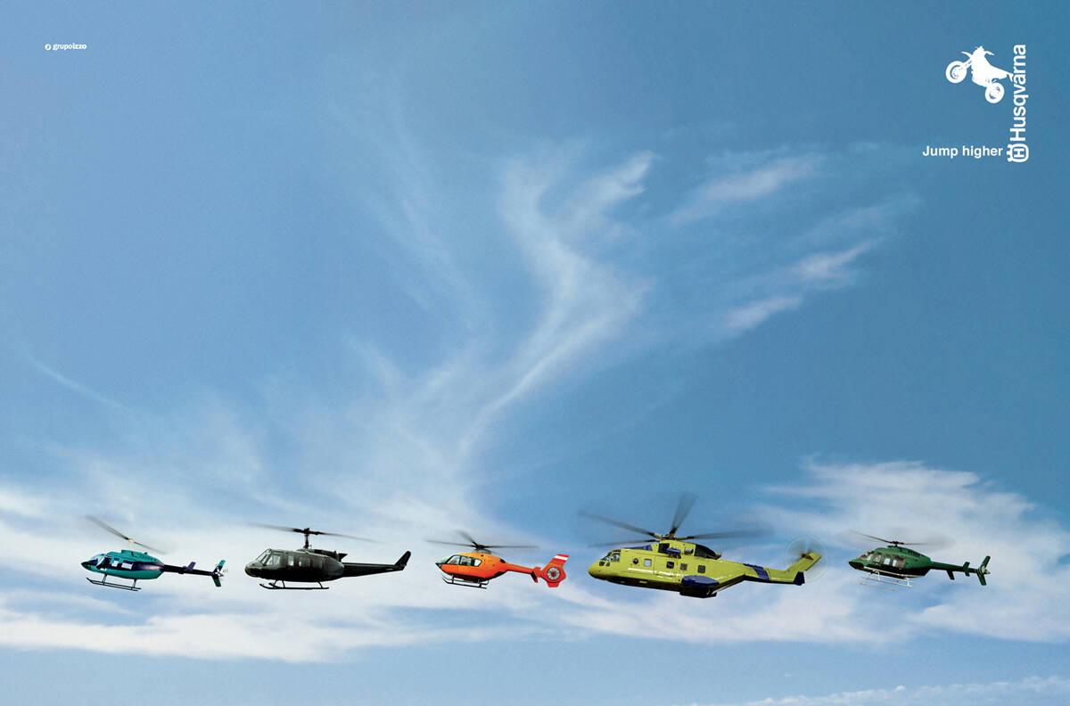 This professional campaign titled 'Eiffel Tower, Helicopters, Pyramids' was published in Brazil in April, 2008. It was created for the brand: Husqvarna, by ad agency: Grey. This Print medium campaign is related to the Automotive and Personal Transportation industry and contains 3 media assets. It was submitted over 17 years ago.