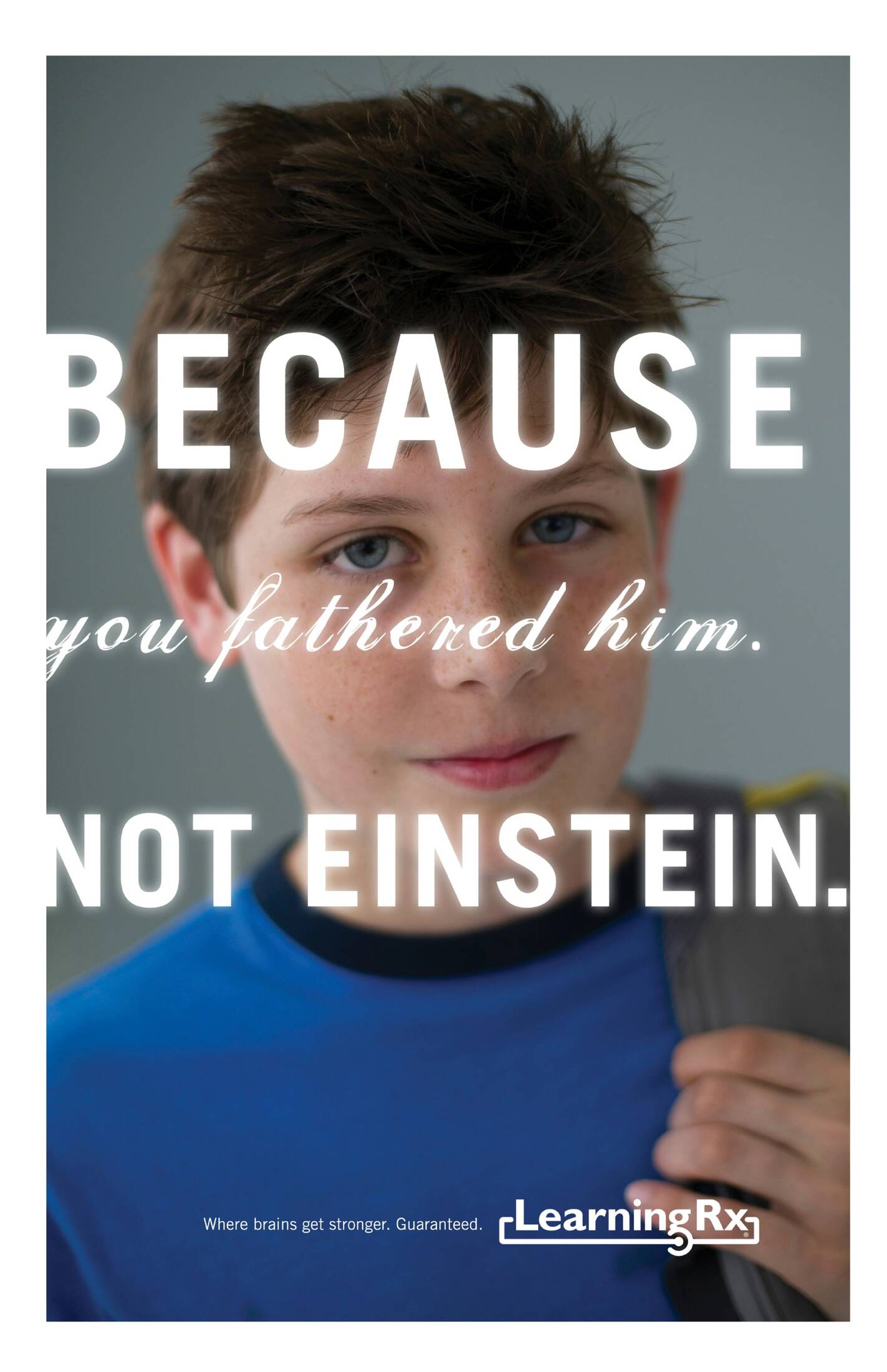 This professional campaign titled 'Einstein, IQ, Looks, Grades' was published in United States in August, 2014. It was created for the brand: LearningRx, by ad agency: Griffin Archer. This Print medium campaign is related to the Education industry and contains 4 media assets. It was submitted over 11 years ago.