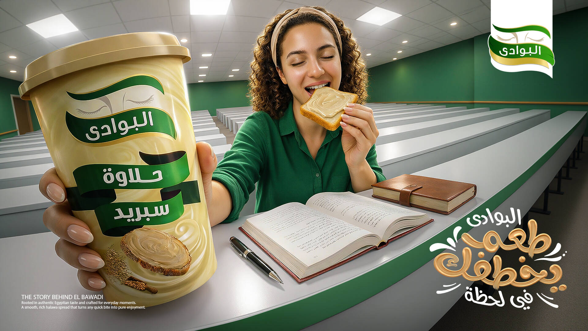 This student campaign titled 'El Bawadi Halawa Spread Campaign' was published in Egypt in April, 2026. It was created for the brand: El Bawadi, . This Design, Digital, and OOH Outdoor media campaign is related to the Food industry and contains 11 media assets. It was submitted 2 days ago by Senior Graphic Designer: Mohamed Aziz.
