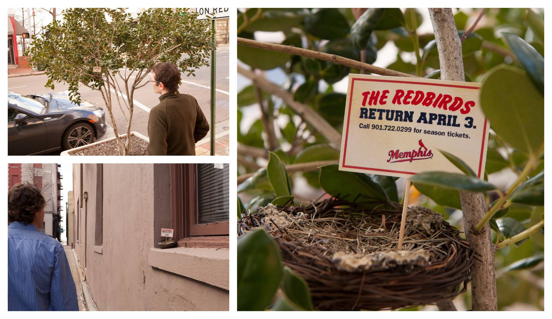 To promote the upcoming season for this minor league baseball affiliate of the St. Louis Cardinals, we placed empty birds' nests in conspicuous spots throughout town with tiny signs that read, “The Redbirds Return April 3."