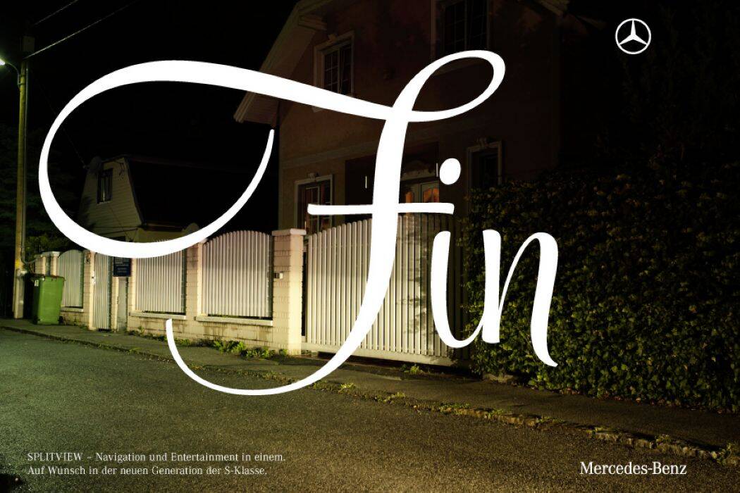 This professional campaign titled 'Ende, The End, Fin' was published in Austria in October, 2009. It was created for the brand: Mercedes, by ad agency: Jung von Matt. This Print medium campaign is related to the Automotive and Personal Transportation industry and contains 3 media assets. It was submitted about 16 years ago.