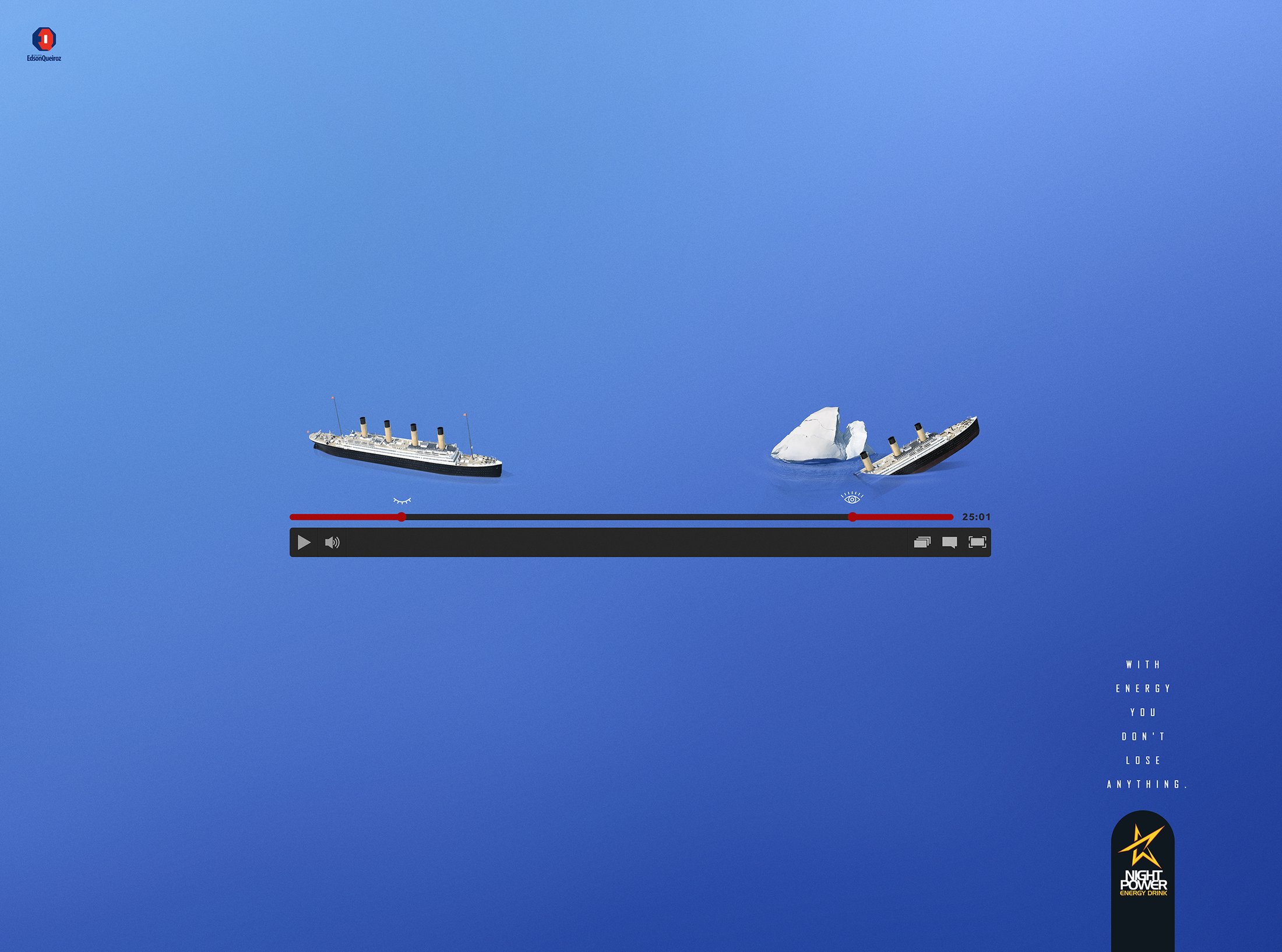 This professional campaign titled 'Energy - Titanic, Energy - Castaway, Energy - Jurassic' was published in Brazil in December, 2017. It was created for the brand: Night Power, by ad agency: G Marketing. This Print medium campaign is related to the Drinks (Non Alcoholic) industry and contains 3 media assets. It was submitted almost 8 years ago.