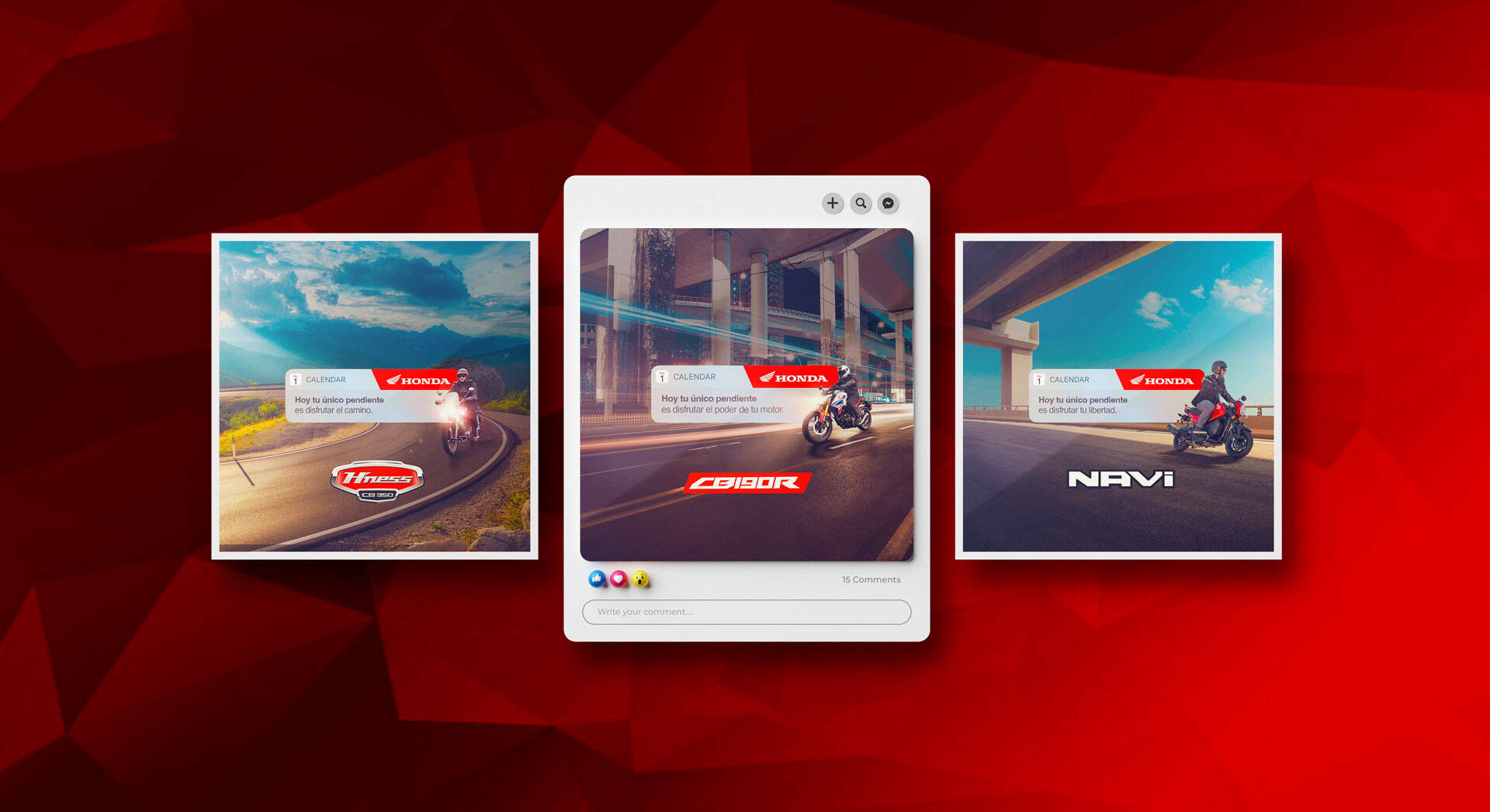 This professional campaign titled 'Enjoy the road' was published in Peru in May, 2024. It was created for the brand: Honda, by ad agency: Agencia Vena. This Digital and Print media campaign is related to the Automotive and Personal Transportation and Transport industries and contains 4 media assets. It was submitted over 1 year ago.