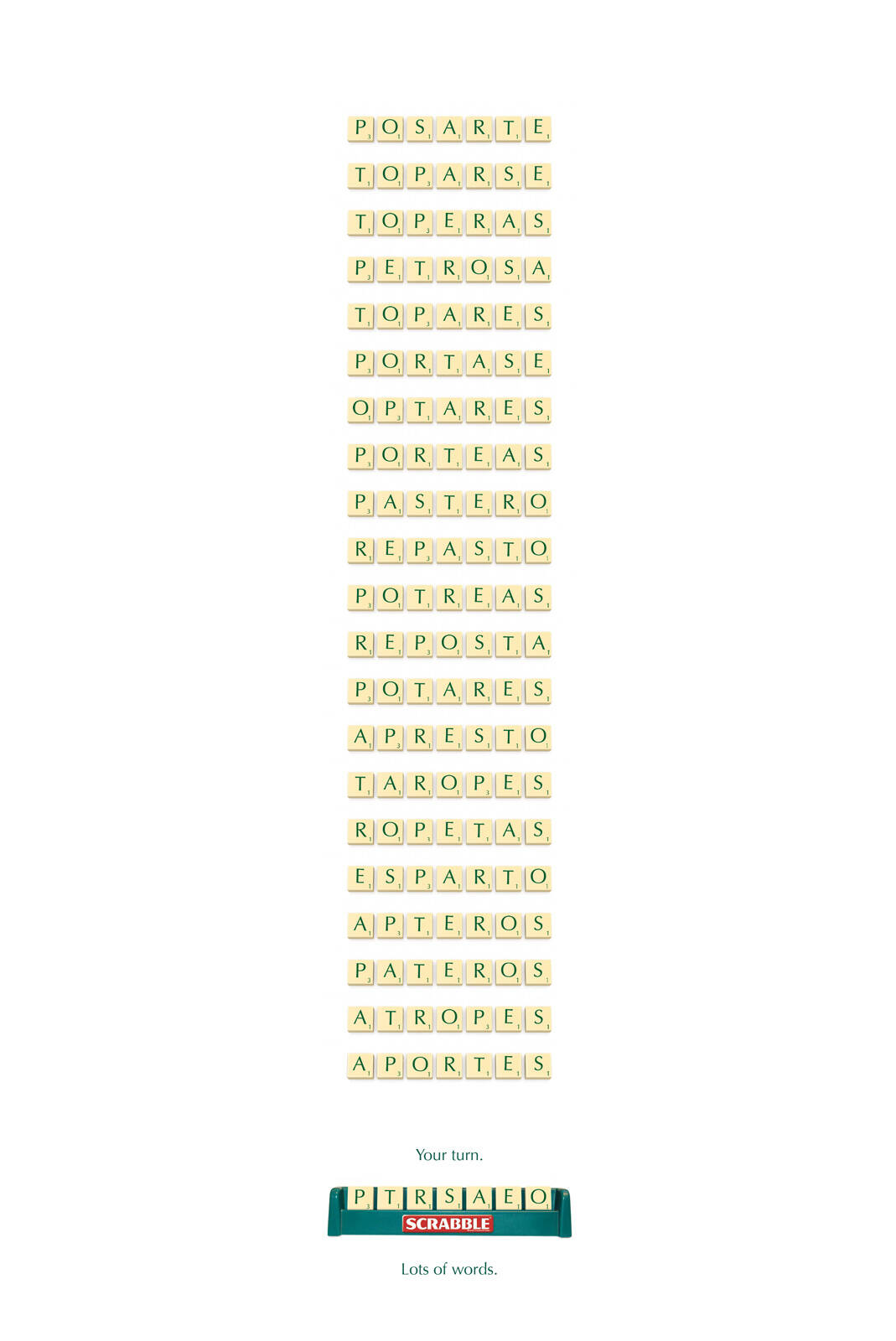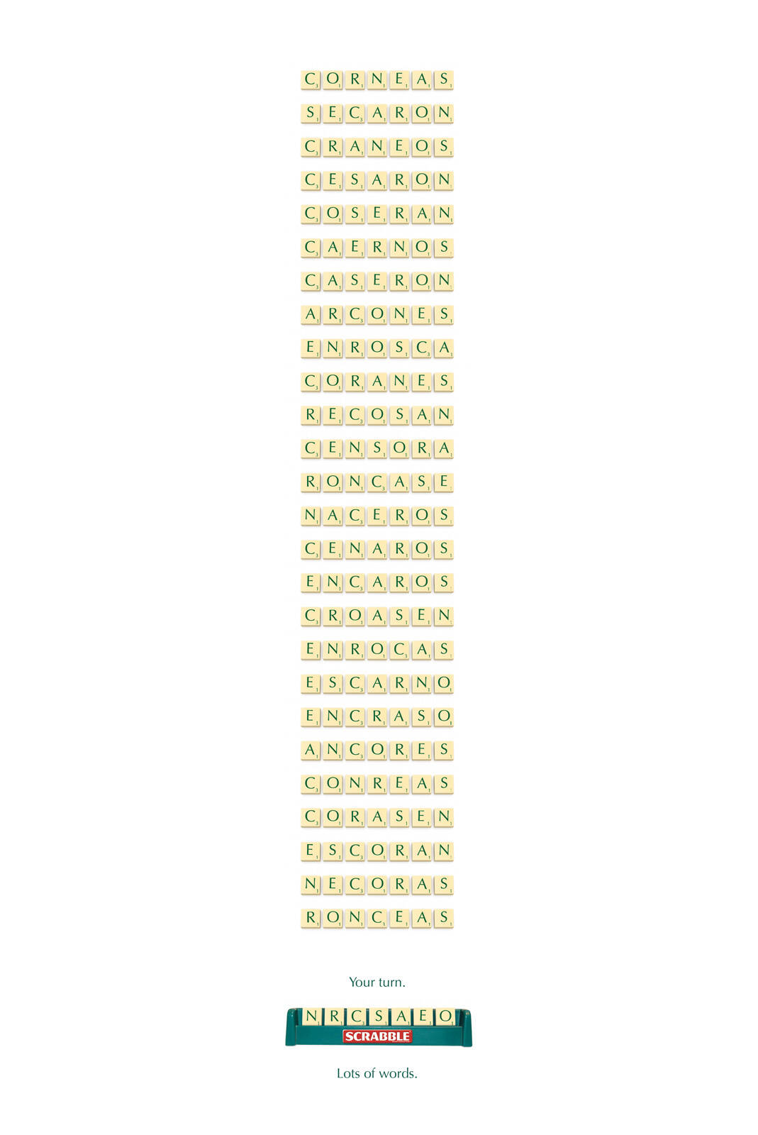 This professional campaign titled 'Escalar, Posarte, Secarán, Cráneos' was published in Mexico in June, 2011. It was created for the brands: Mattel and Scrabble, by ad agency: Ogilvy. This Print medium campaign is related to the Gaming industry and contains 4 media assets. It was submitted over 14 years ago.