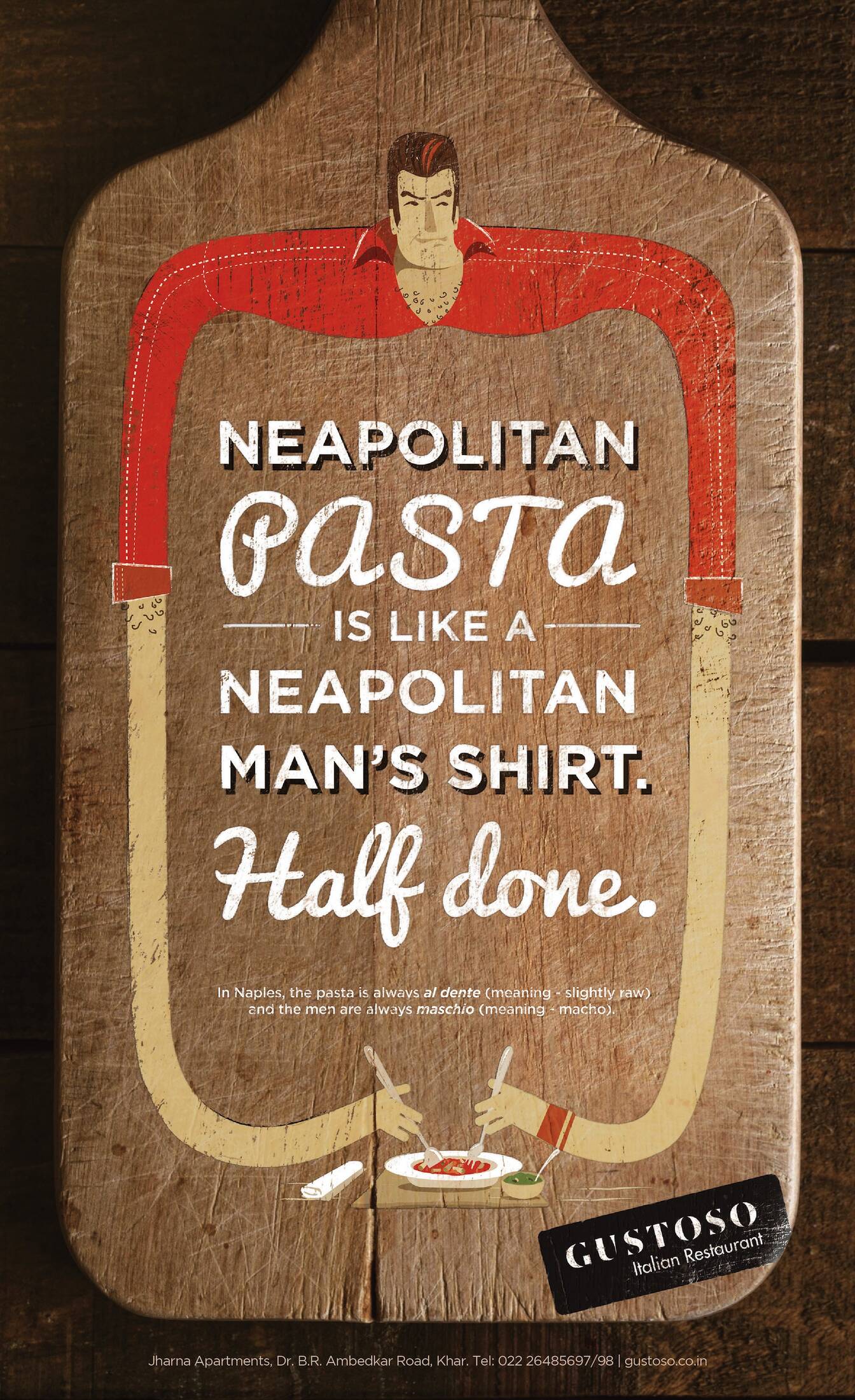 This professional campaign titled 'Espresso, Pizza, Pasta, Tiramisu' was published in India in August, 2016. It was created for the brand: Gustoso, by ad agency: BBH. This Print medium campaign is related to the Food industry and contains 4 media assets. It was submitted over 9 years ago.