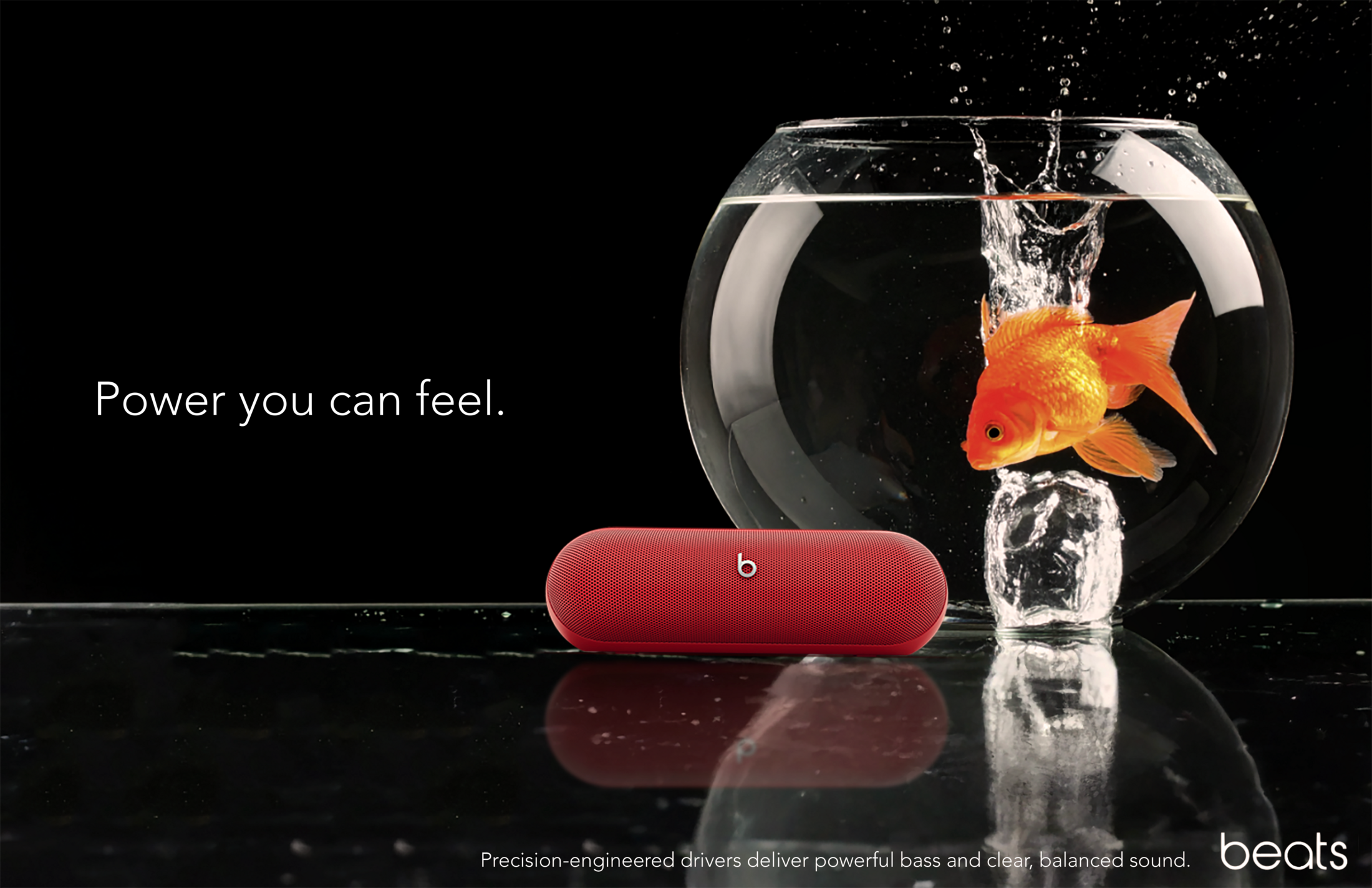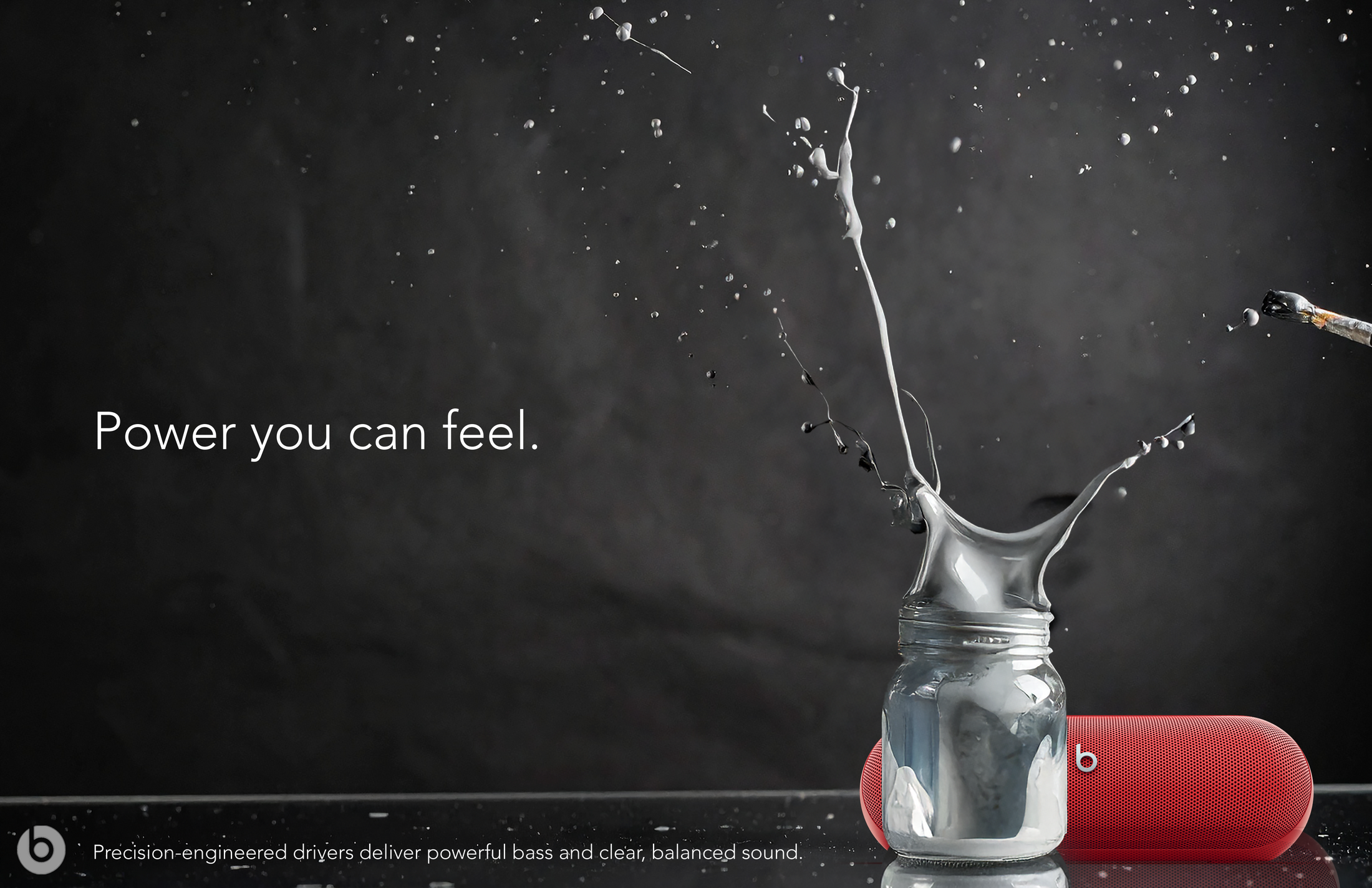 Execution: The Beats Pill is placed next to everyday objects that visibly vibrate, using physical movement to make powerful sound impossible to ignore.