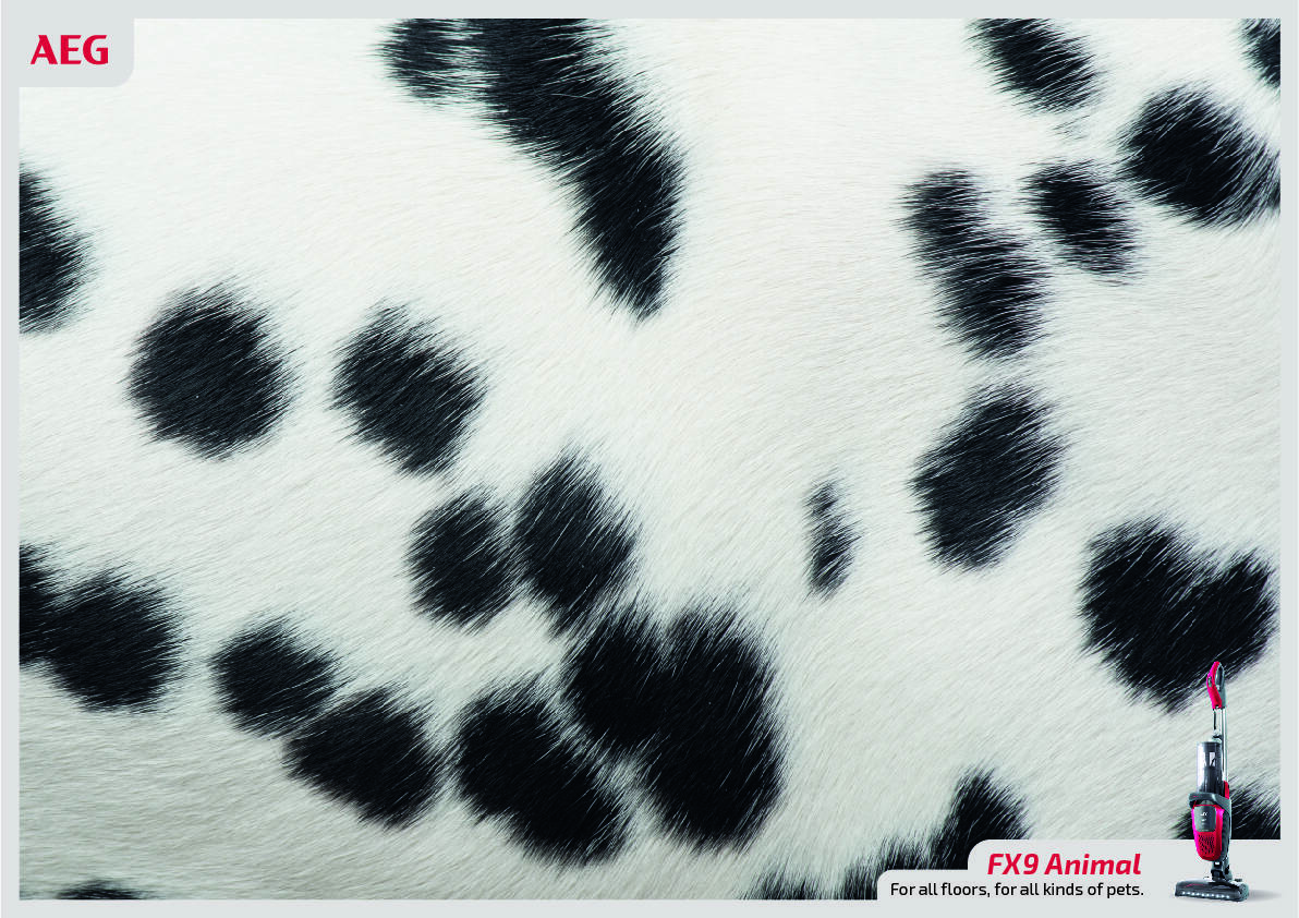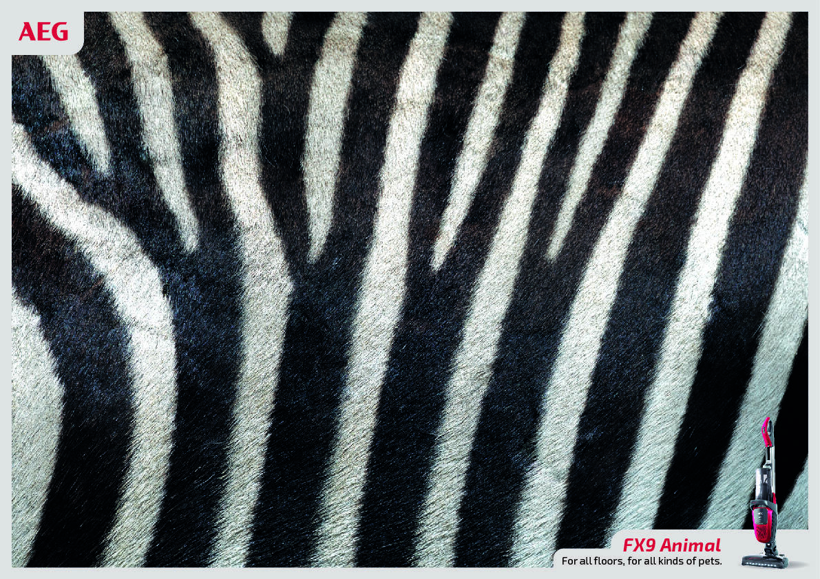 The new AEG FX9 Animal vacuum cleaner is an unusual vacuum that helps keep all kinds of surfaces clean of hair. Starting from this premise we reach a conclusion that would become the creative axis of the campaign: For all soils, for all kinds of pets. With this concept we reinforce the characteristics of the product, providing them with maximum power and quality. No matter what kind of pet you have: A tiger, a zebra, a horse, a bear, a hamster, a dog, a cat ... it doesn't matter. The new animal FX9 can with all kinds of hairs.