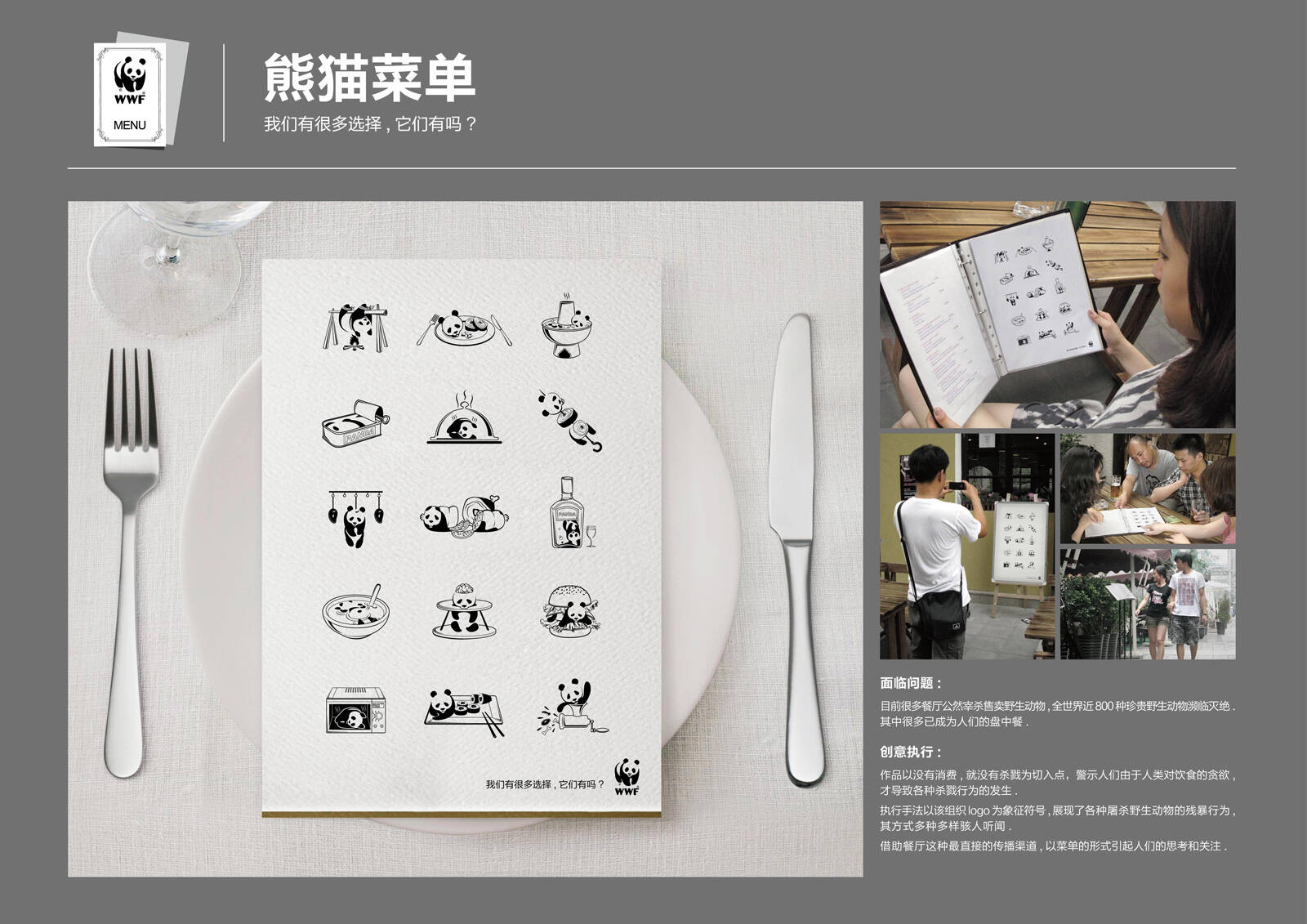 This professional campaign titled 'Experiment, Abuse, Accessory, Food, Menu' was published in China in December, 2011. It was created for the brand: WWF, by ad agency: DMG. This Print medium campaign is related to the Public Interest industry and contains 5 media assets. It was submitted almost 14 years ago.