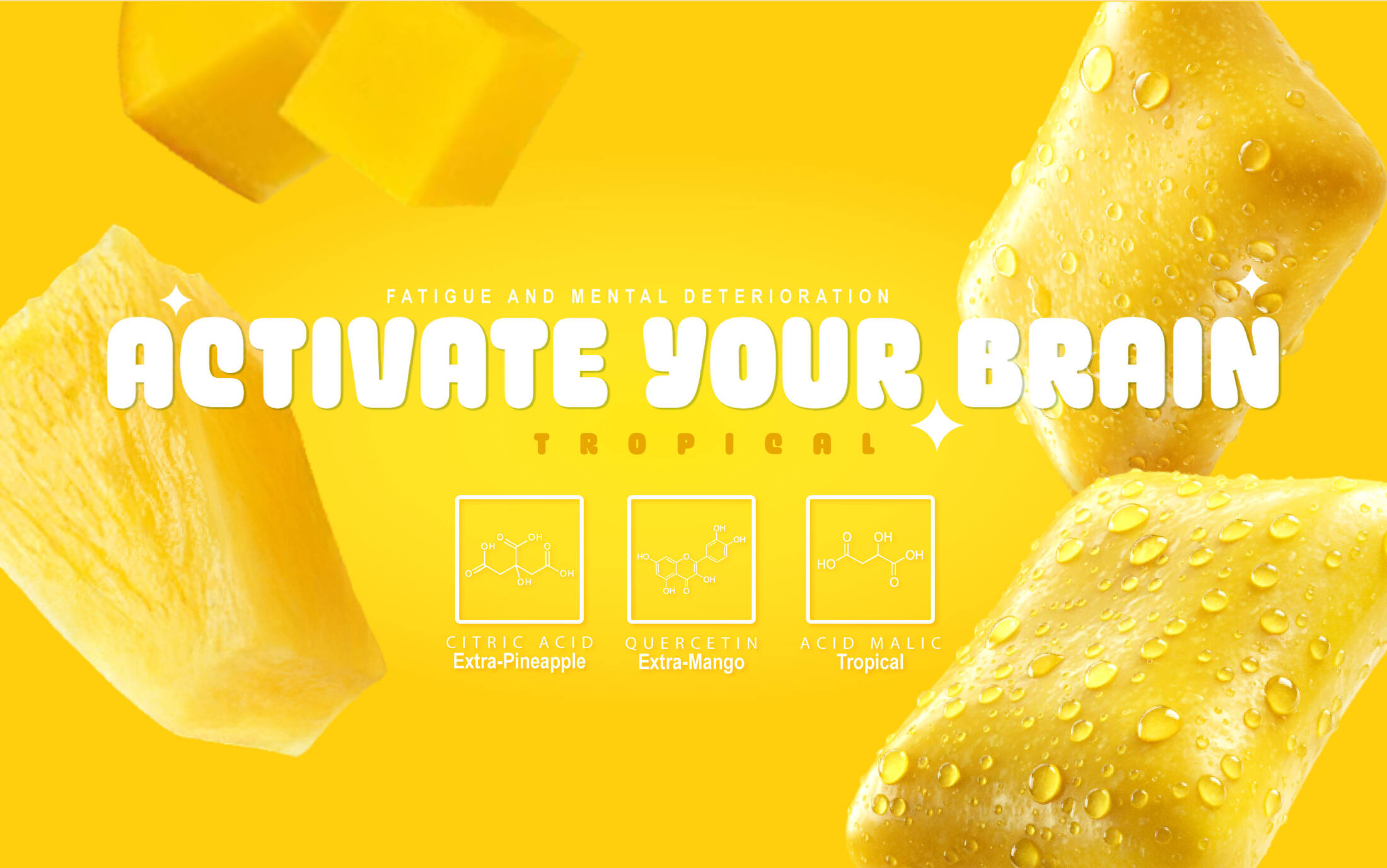 Chemical Disruption: We enriched the formula with active compounds (Quercetin, Vitamin B9, Cineole) so each flavor delivers a specific cognitive benefit (Energy, Memory, Calm), positioning the product as an accessible supplement.