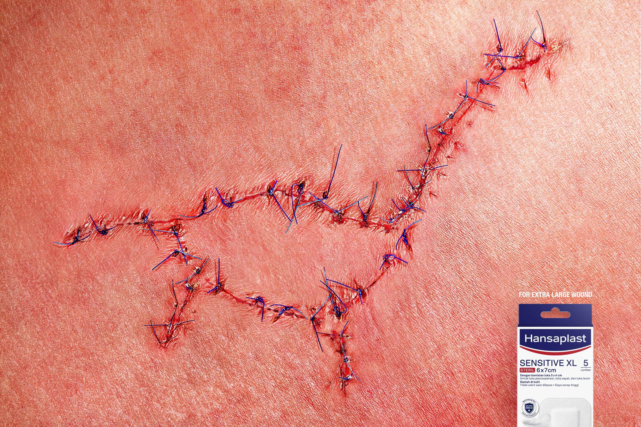 This professional campaign titled 'Extra Large Wound' was published in Indonesia in October, 2023. It was created for the brand: Hansaplast, . This Print medium campaign is related to the Health and Pharmaceutical industries and contains 3 media assets. It was submitted almost 2 years ago.