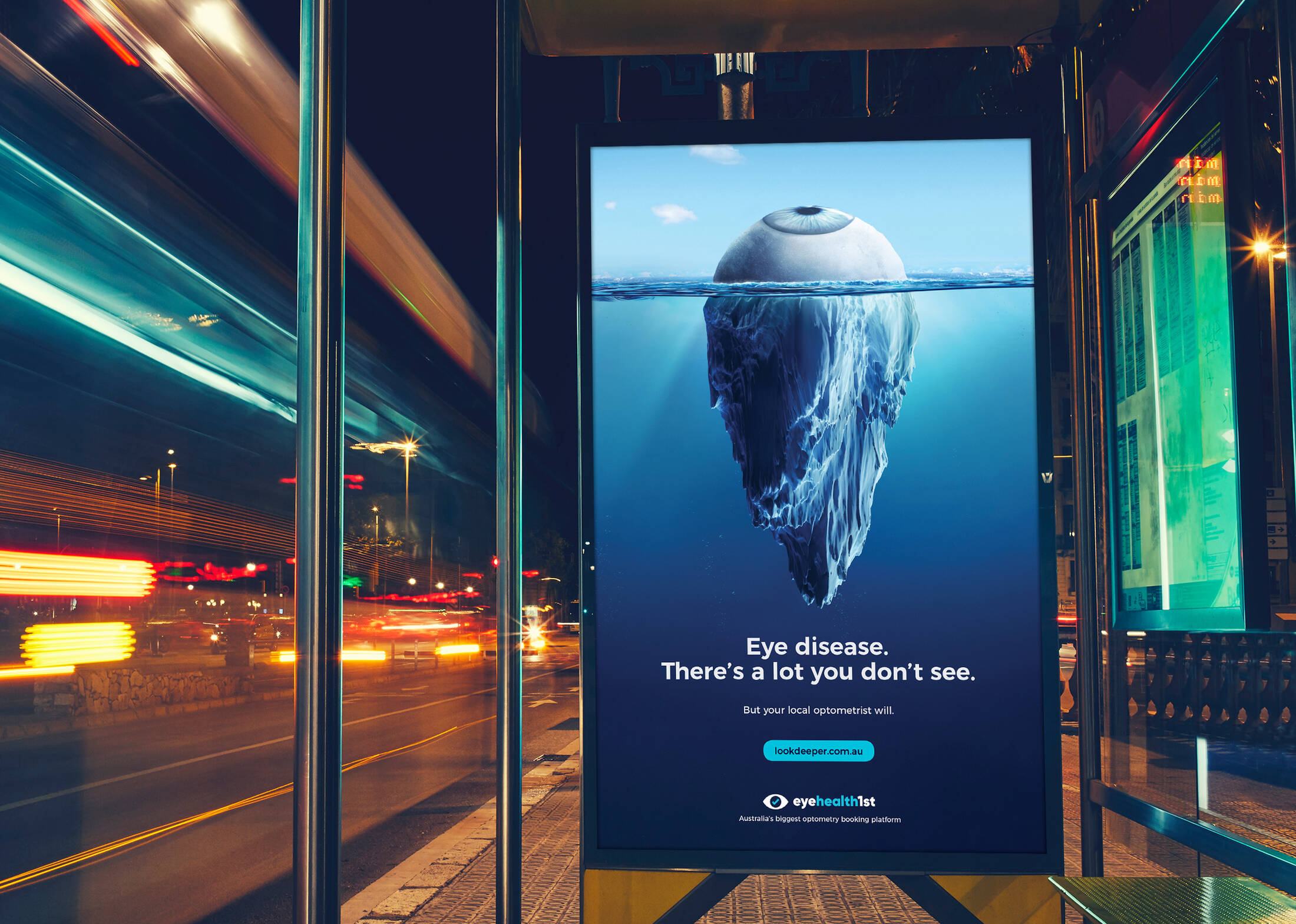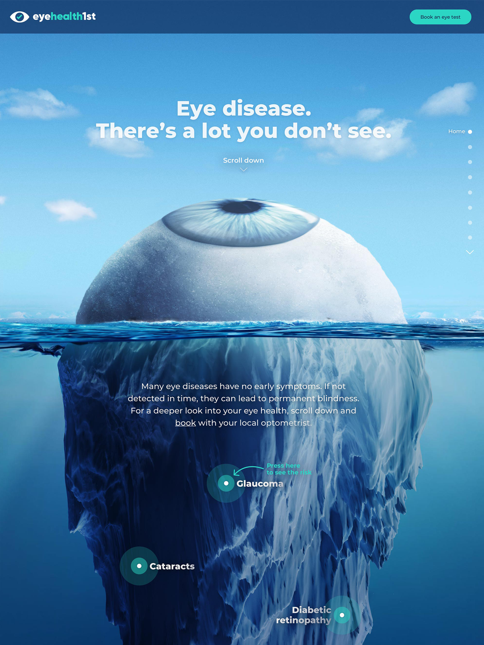 An 'Eyesberg' revealing the eye diseases lurking beneath the surface that only an optometrist can detect and prevent.