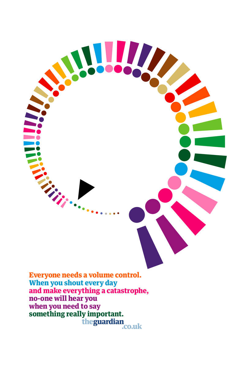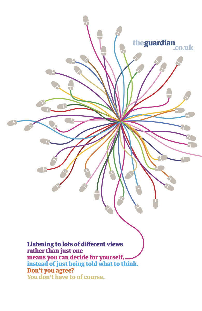 This professional campaign titled 'Fact and opinion, Volume control, Owned by no one, Listen...' was published in United Kingdom in March, 2007. It was created for the brand: The Guardian, by ad agency: Wieden + Kennedy. This Print medium campaign is related to the Media industry and contains 4 media assets. It was submitted over 18 years ago.