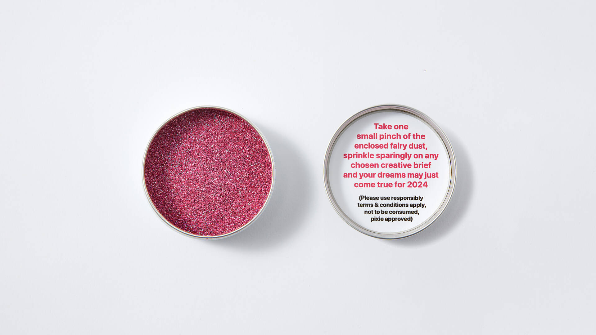 This Christmas, each of neverland’s clients and production partners will receive their own tin of Fairy Dust. Included alongside this are simple instructions to sprinkle a little bit on all their briefs for 2024, to help them find that extra bit of special magic.