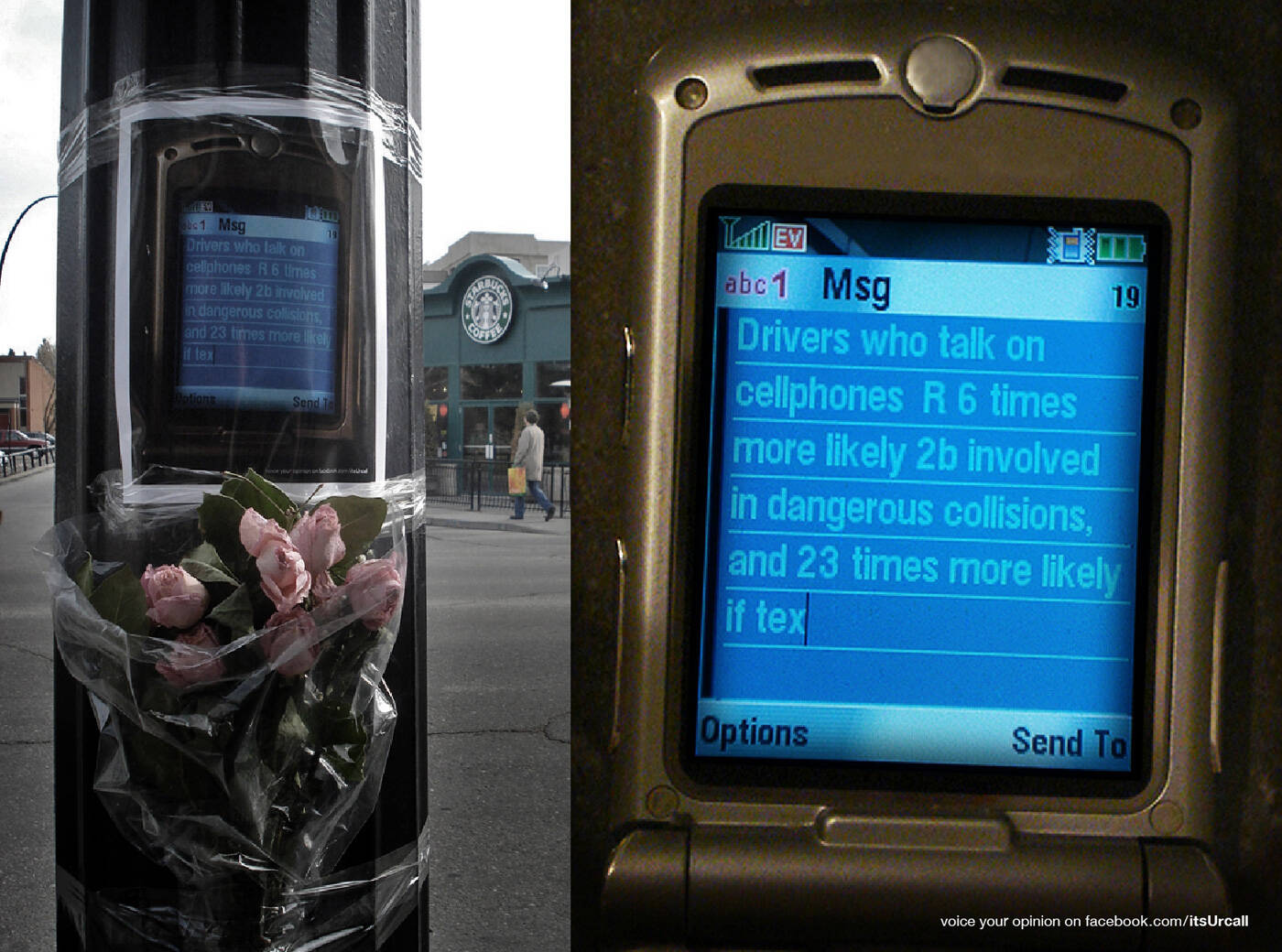 Guerilla - fake memorials (facing pedestrian traffic) were set up on telephone polls around Calgary, with a prompt to “voice your opinion on facebook.com/itsUrcall”