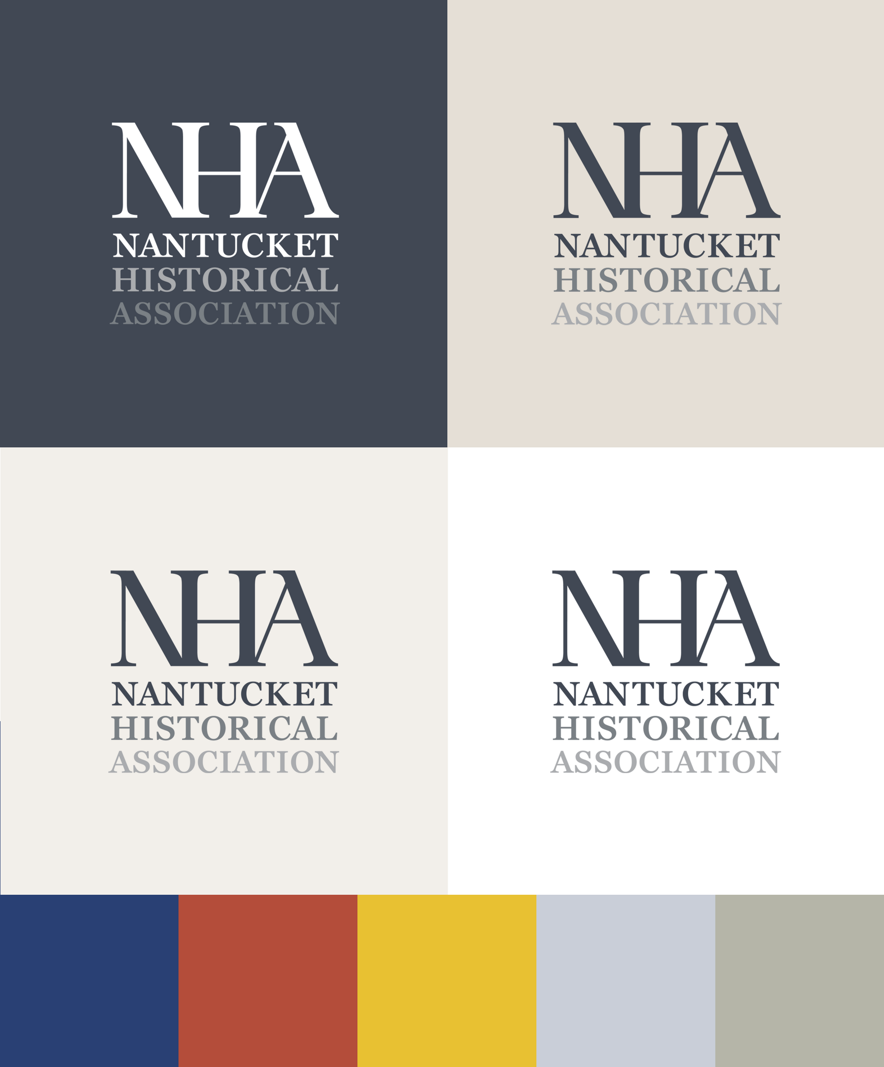 A sophisticated color palette anchors the rebrand. Grey serves as the primary brand color — a tribute to Nantucket's nickname “The Grey Lady” — while supporting colors are inspired by the island's distinctive red brick buildings, weathered cobblestone streets and surrounding Atlantic Ocean.