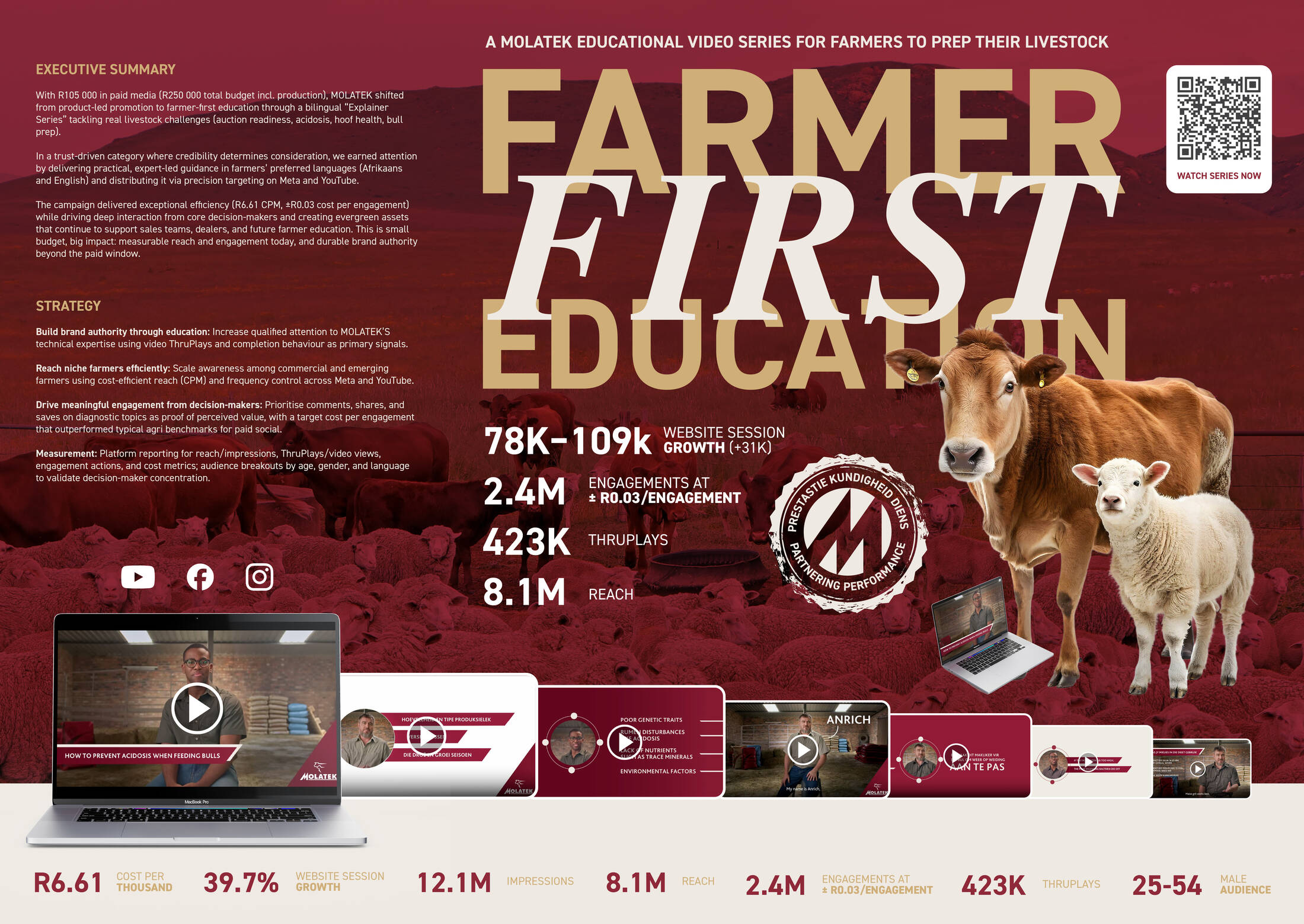 This professional campaign titled 'Farmer First Education' was published in South Africa in April, 2026. It was created for the brand: Molatek, by ad agency: Lumico. This Digital and Film media campaign is related to the Other industry and contains 4 media assets. It was submitted about 5 hours ago by Lumico (Pty) Ltd.