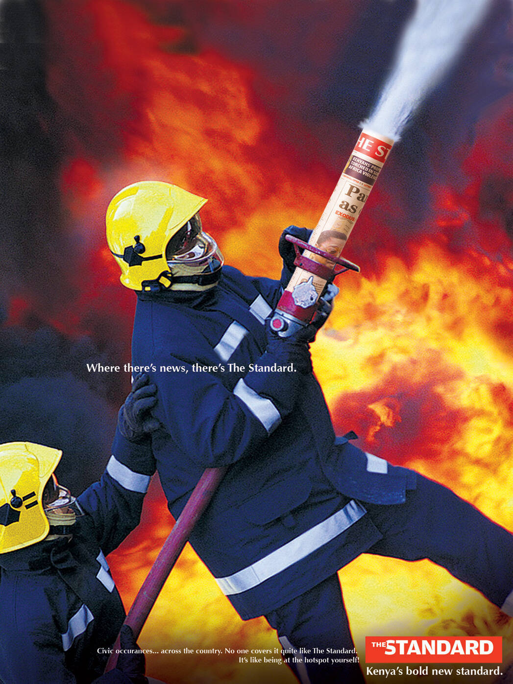 This professional campaign titled 'Fashion, Music, Work, Sport, Fire' was published in Kenya in July, 2008. It was created for the brand: The Standard, by ad agency: McCann. This Print medium campaign is related to the Media industry and contains 5 media assets. It was submitted over 17 years ago.