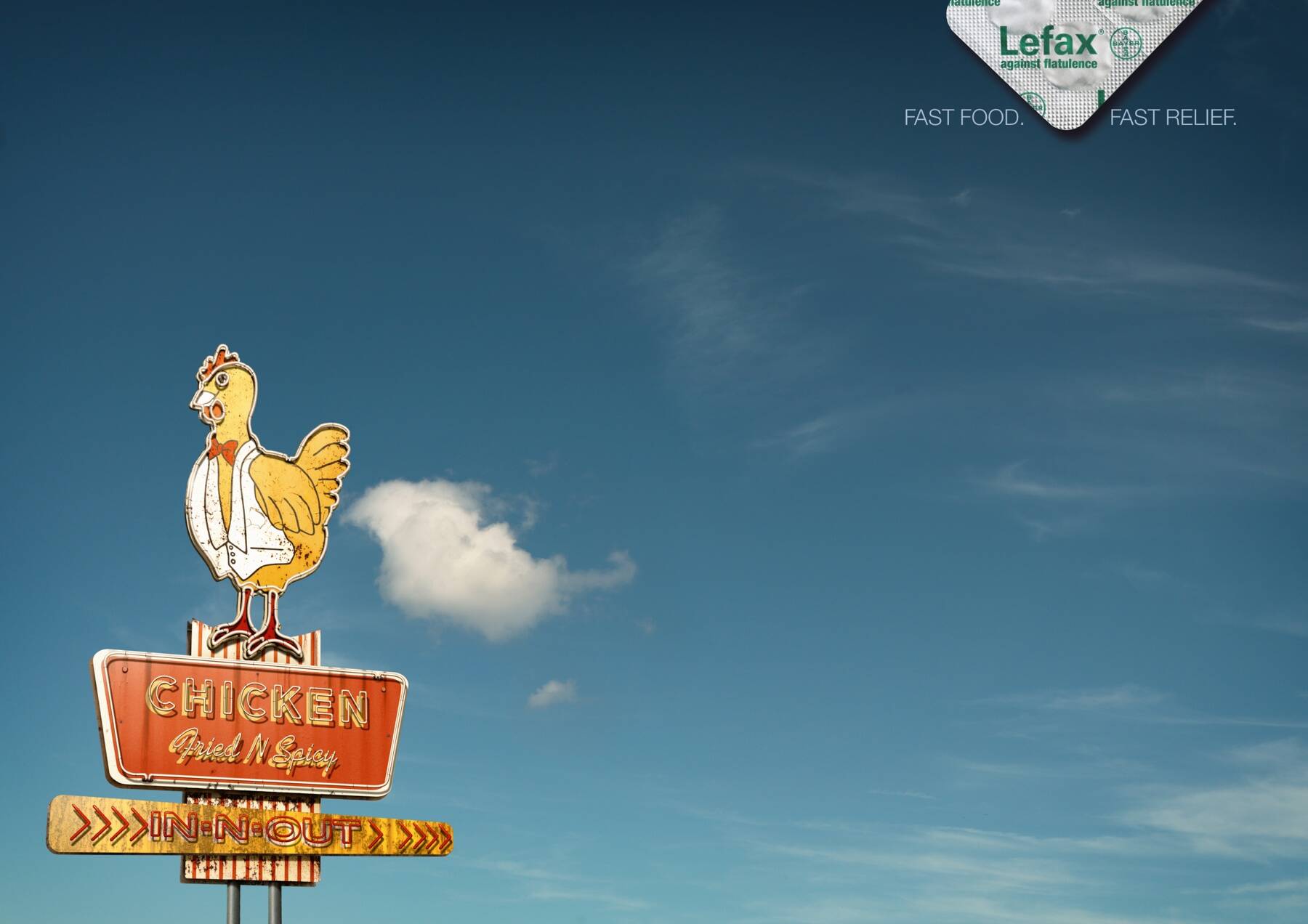 This professional campaign titled 'Fast food flatulence, Pig, Fast food flatulence, Chicken,...' was published in Germany in April, 2013. It was created for the brand: Enzym Lefax, by ad agency: BBDO. This Print medium campaign is related to the Pharmaceutical industry and contains 3 media assets. It was submitted over 12 years ago.