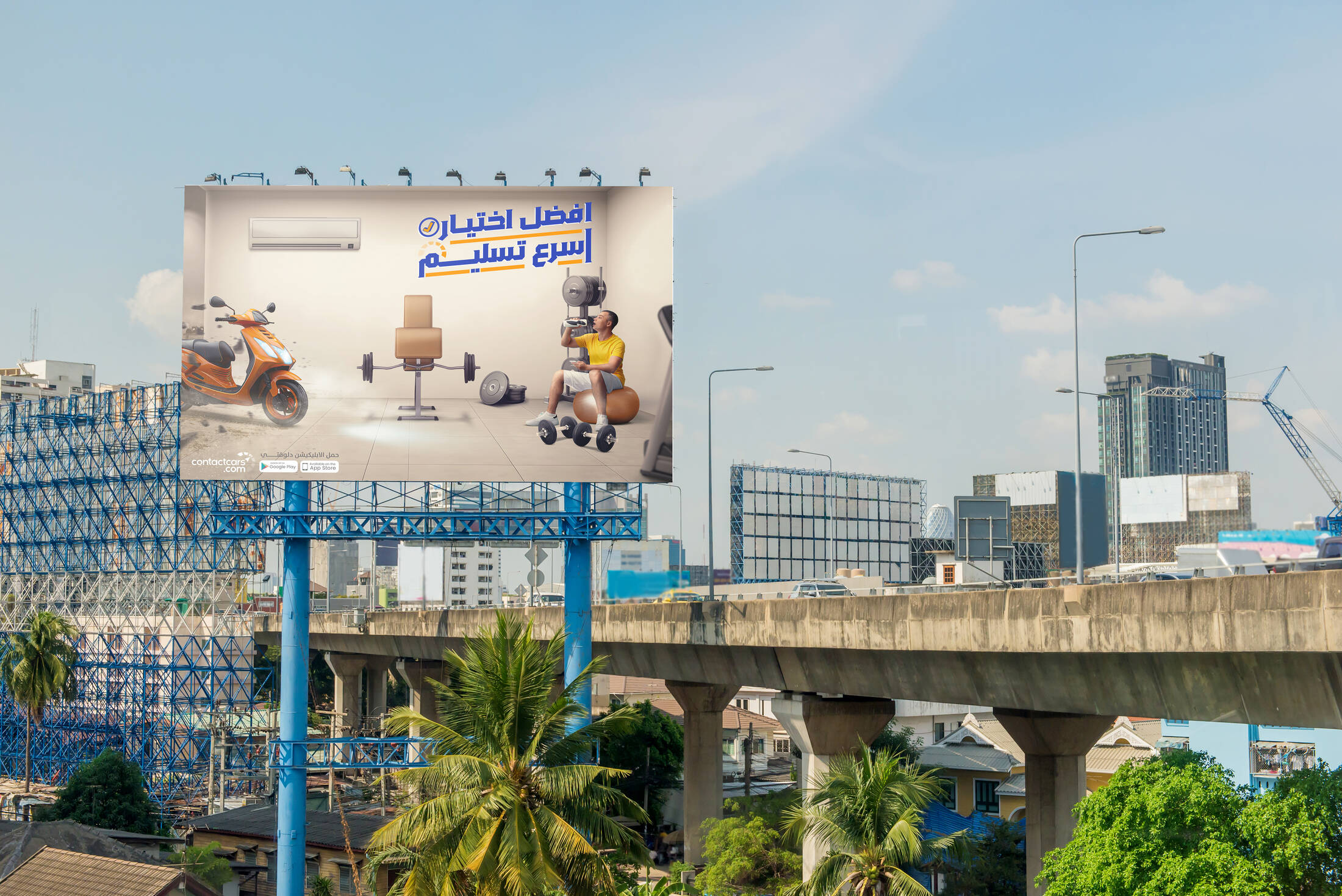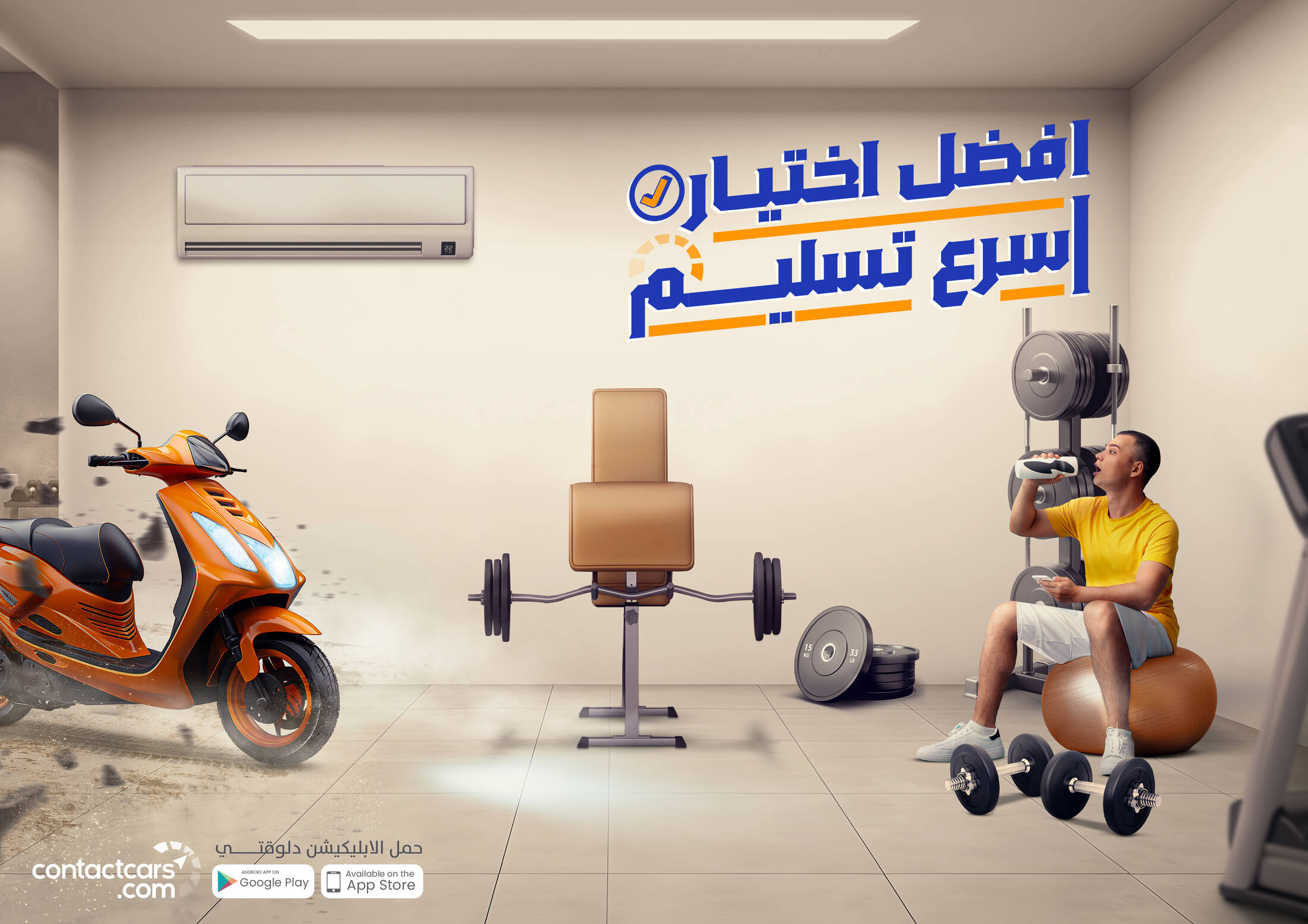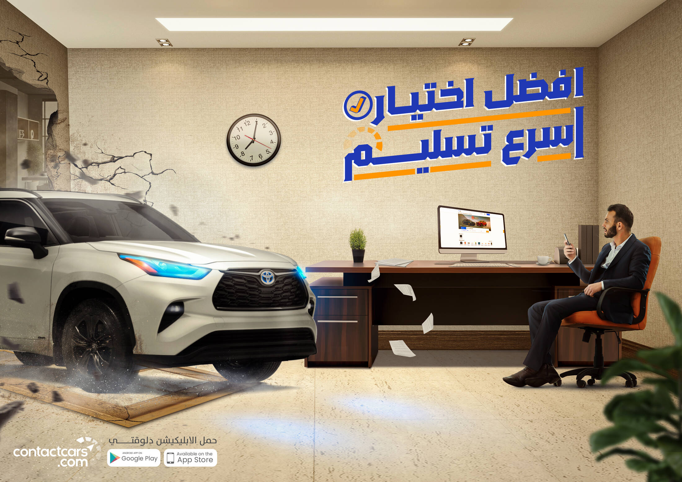 Highlighting the target audence and the fast product by placing the person on one side holding his phone and on the other side the car or motorcycle enters at maximum speed after he has chosen it. The tov of campaign was chosen as the best choice for the fastest delivery.