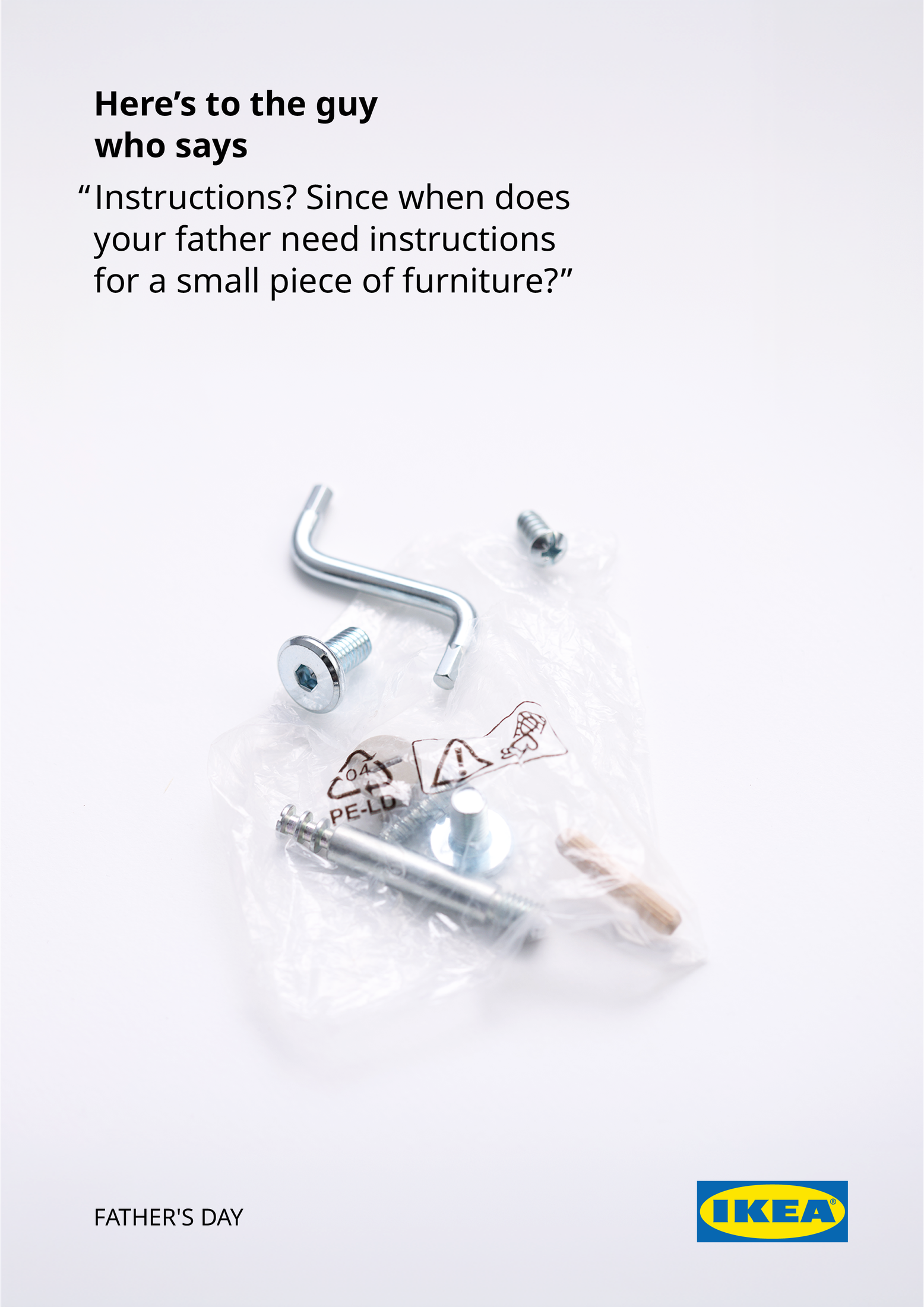 This professional campaign titled 'FATHER’S DAY / SCREWS' was published in Greece in June, 2024. It was created for the brand: IKEA, by ad agency: The Newtons Laboratory. This Design and Digital media campaign is related to the Retail Services industry and contains 2 media assets. It was submitted over 1 year ago.