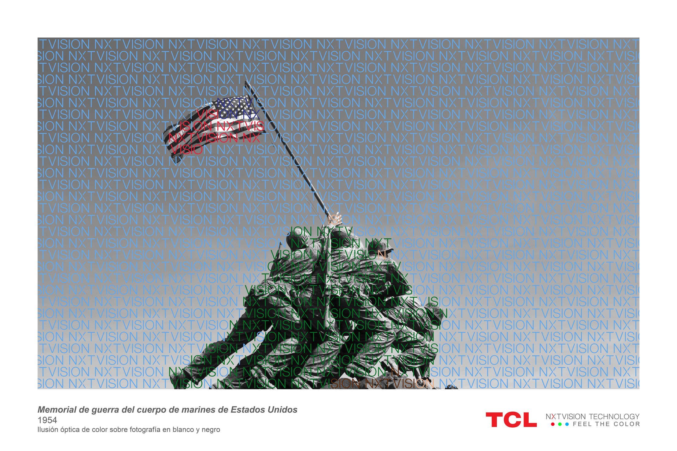 "US Marine Corps war memorial" / 1954 / Optical illusion of color over a black and white photography.