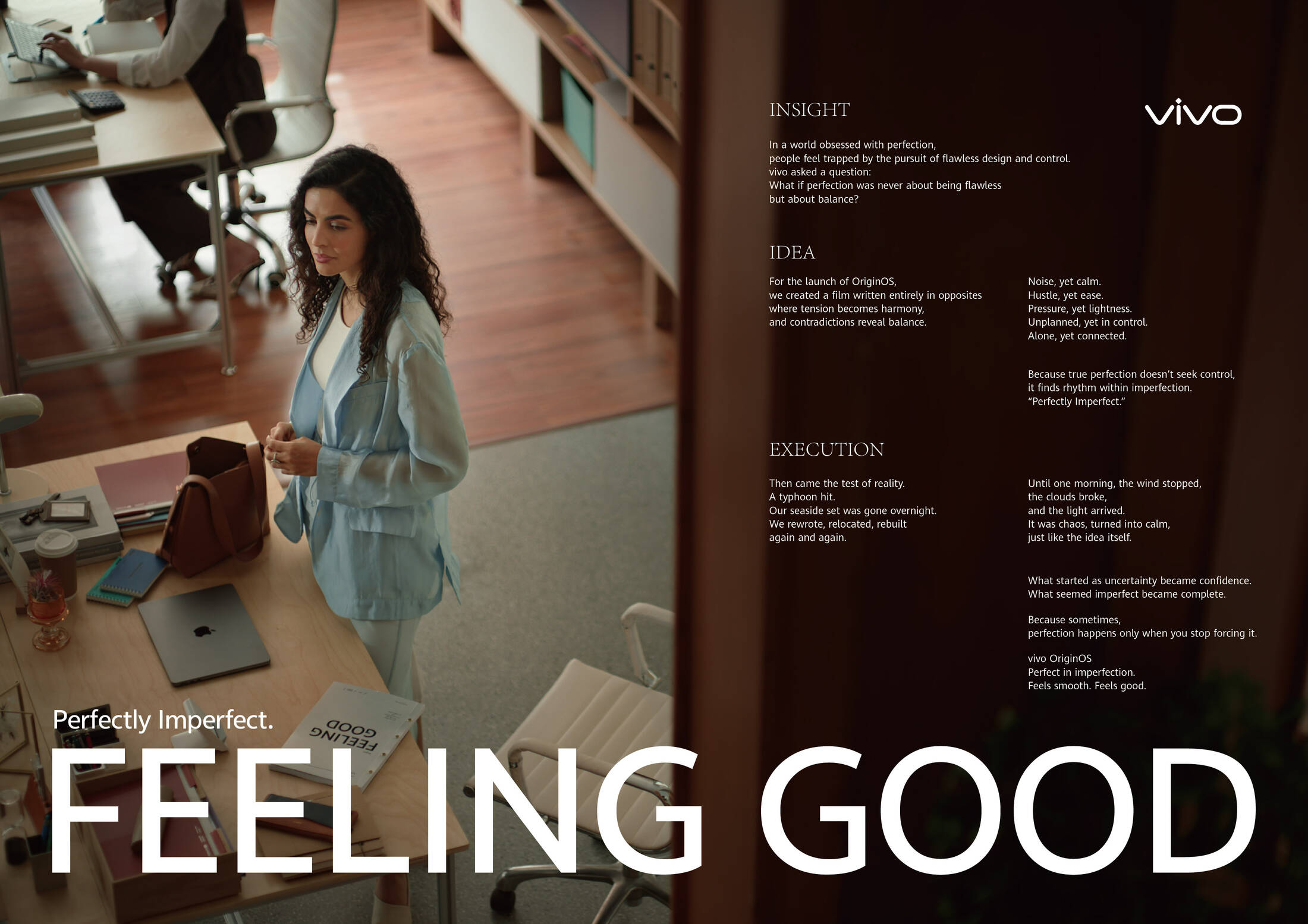 This professional campaign titled 'Feeling Good' was published in United States in November, 2025. It was created for the brand: Vivo, by ad agency: Think & Action. This Film medium campaign is related to the Electronics, Technology industry and contains 6 media assets. It was submitted 23 days ago by CEO: THINK & ACTION of THINK & ACTION.